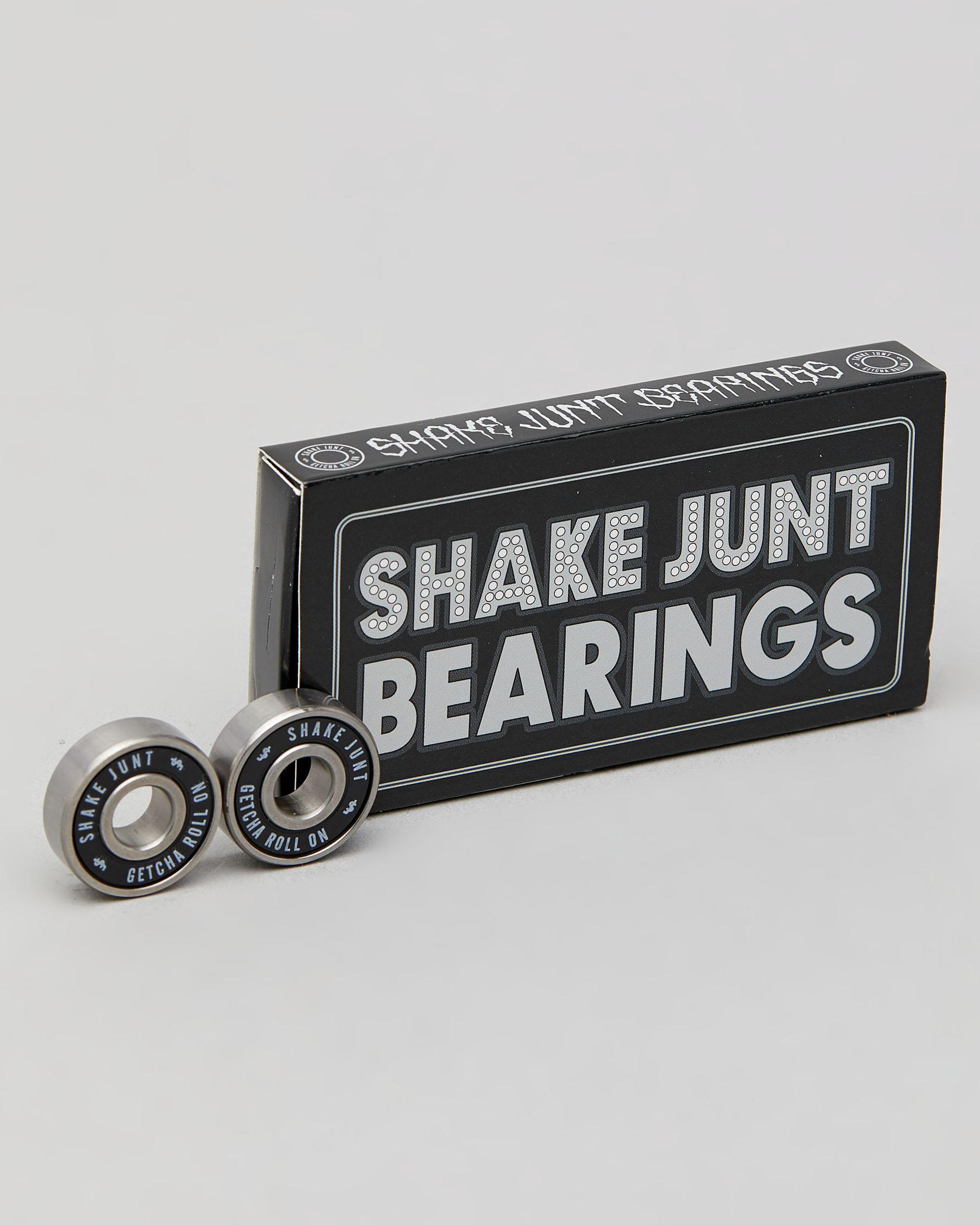 The Shake Junt Night Train Abec 5 Bearings in Assorted feature a sleek black color for smooth and reliable skateboard performance.