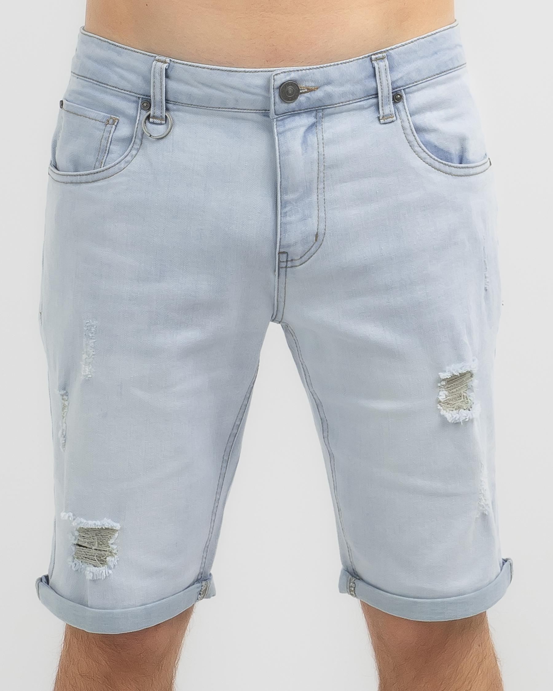Shop Skylark Absurd Denim Shorts in Light Blue for a playful addition to your summer wardrobe. Made with high-quality denim, these shorts are perfect for sunny days out.