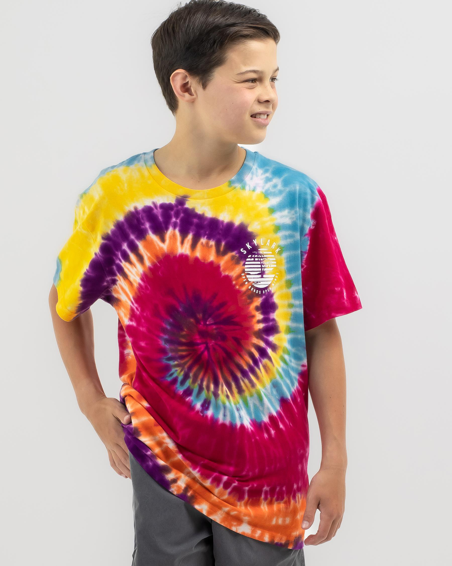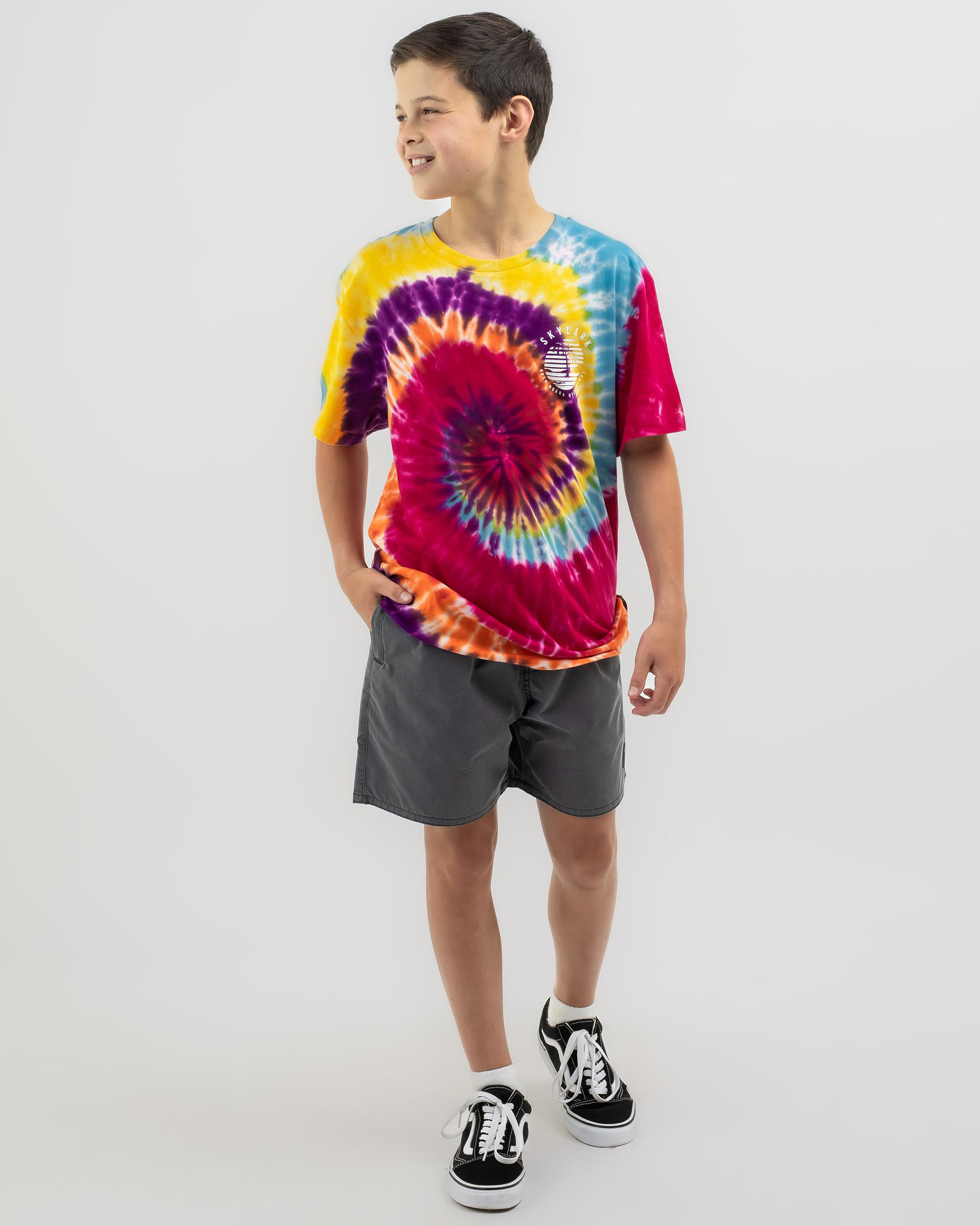 Brighten up your little one's wardrobe with the Skylark Boys' Atomic T-Shirt in vibrant tie dye. Perfect for adding a pop of color to their everyday look.