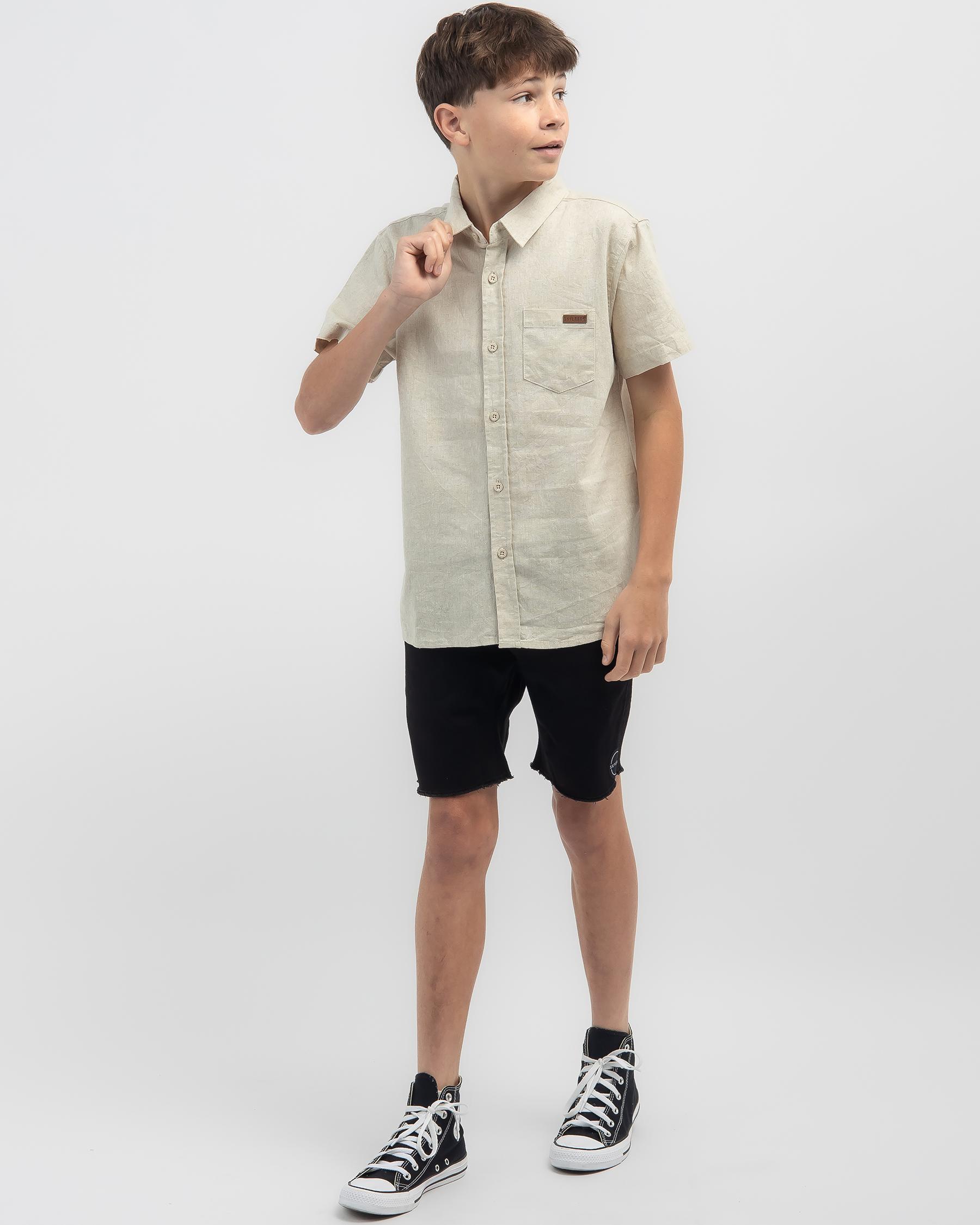 The Skylark Boys' Hemp Short Sleeve Shirt in Oatmeal is a cool and comfortable choice for everyday wear.