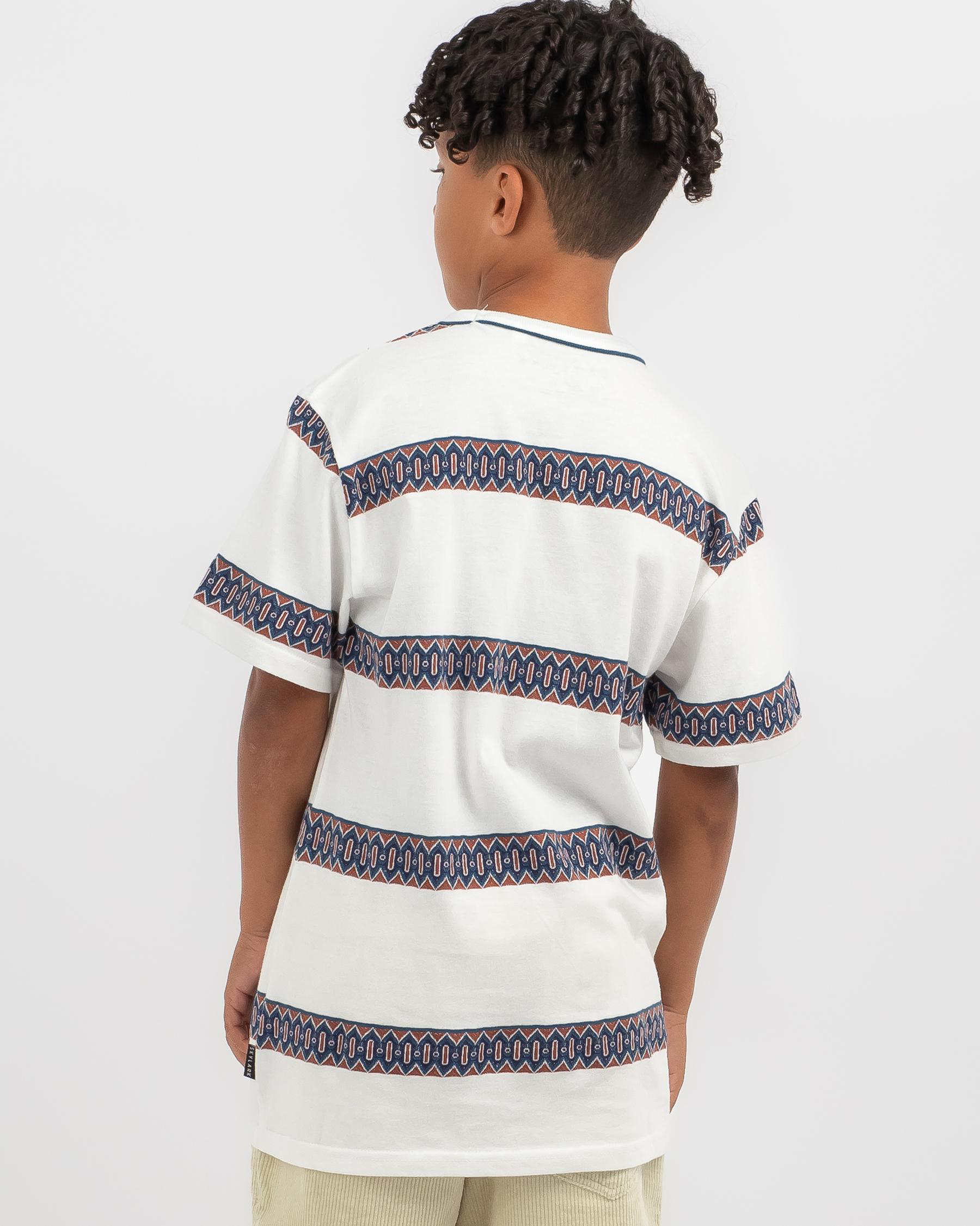 The Skylark Boys' Tropics T-Shirt in Blue Stripe is perfect for summertime adventures. Made with lightweight fabric, this stylish tee will keep your little one cool and comfortable all day long.