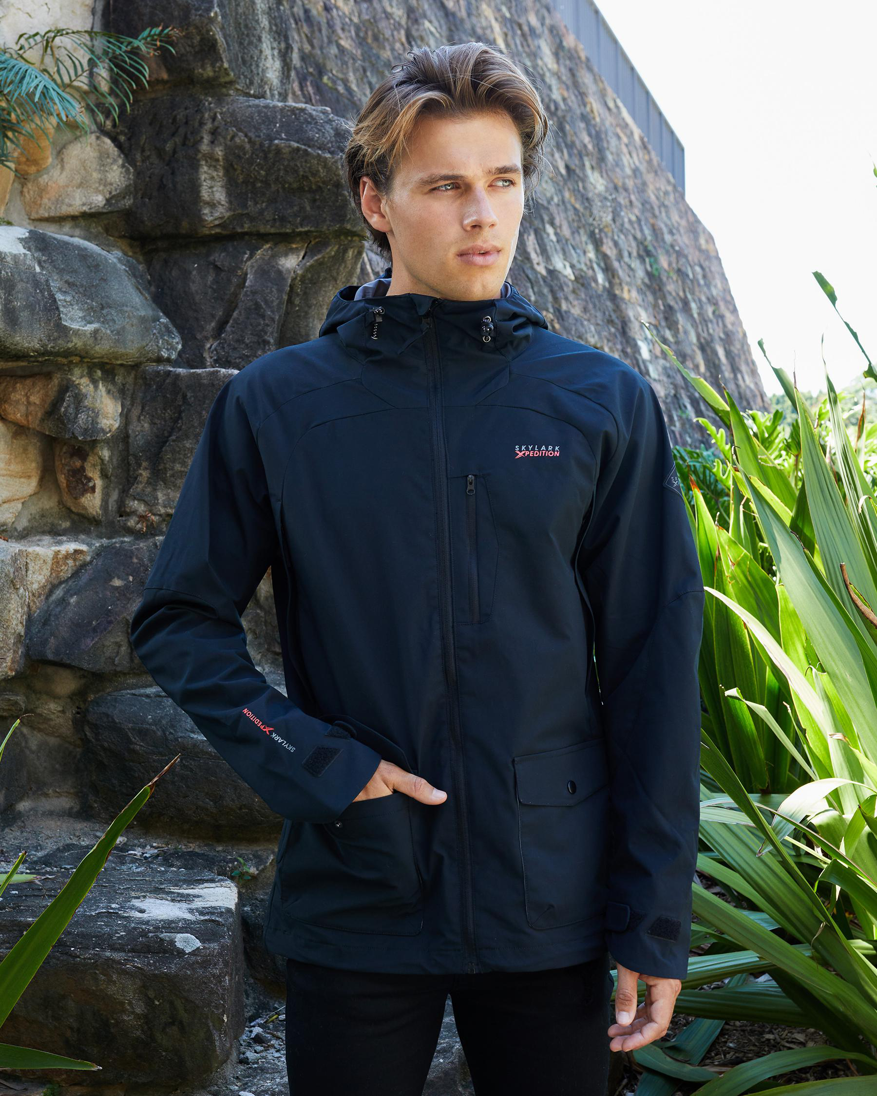 3 zipped pockets on chest.