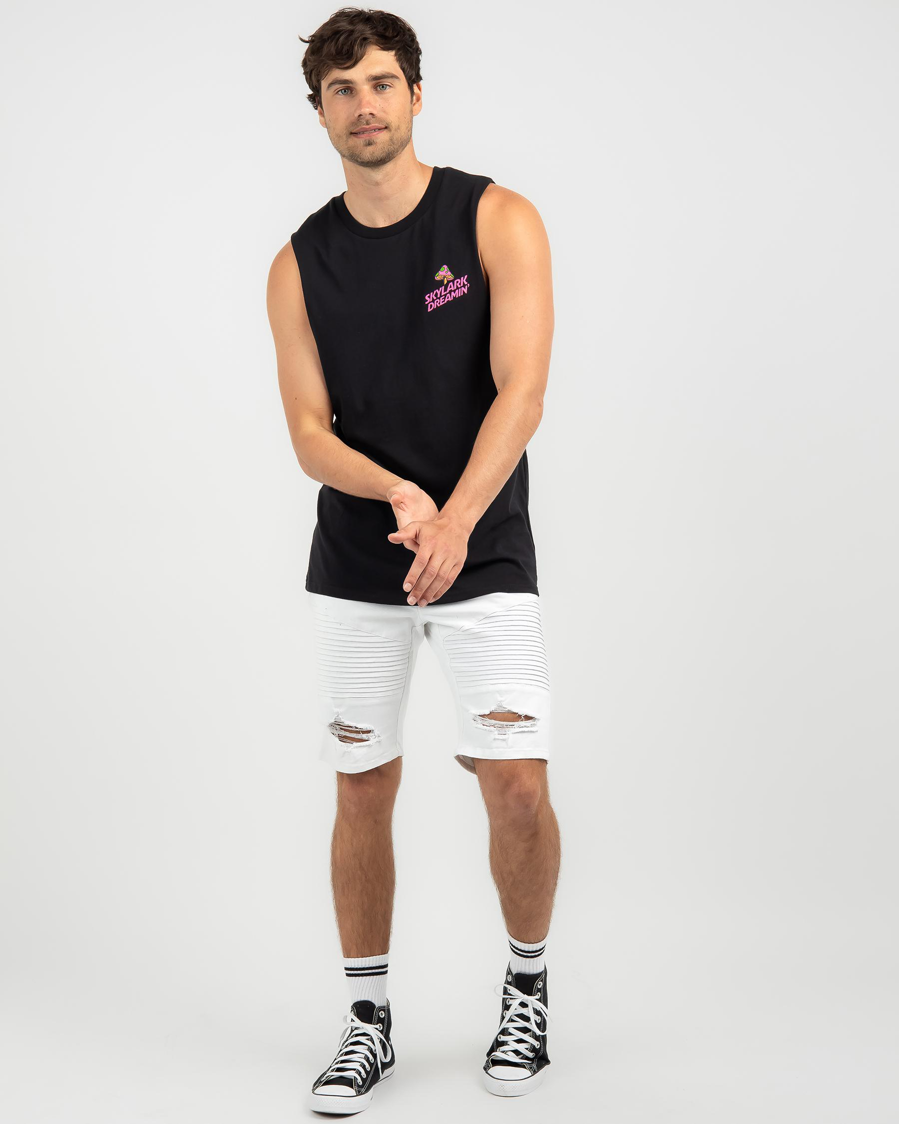 The Skylark Dreaming Muscle Tank in Black Acid offers a sleek and edgy look for any occasion.