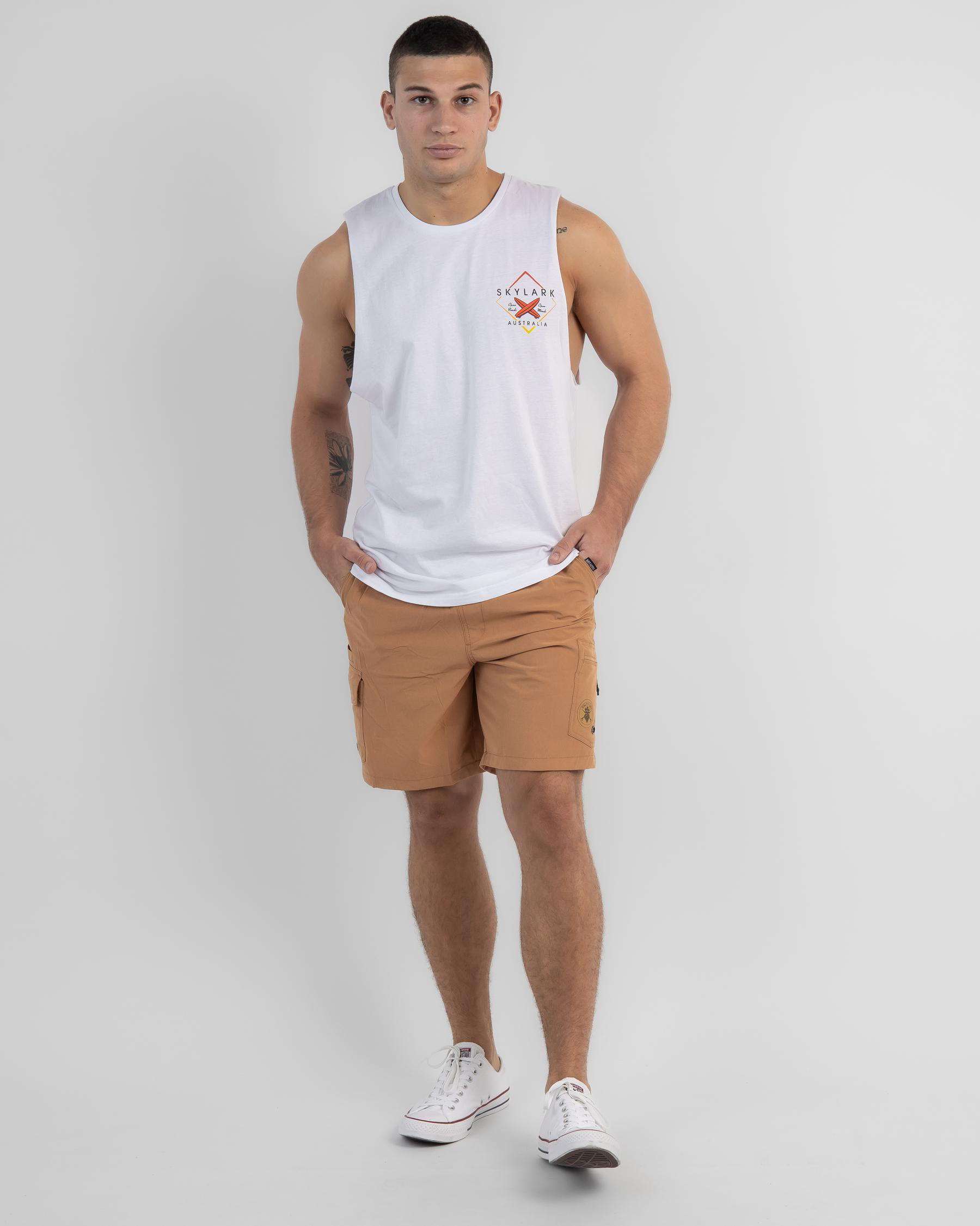 The Skylark Hightide Muscle Tank in white is a versatile addition to your wardrobe. Perfect for effortless style and comfort.