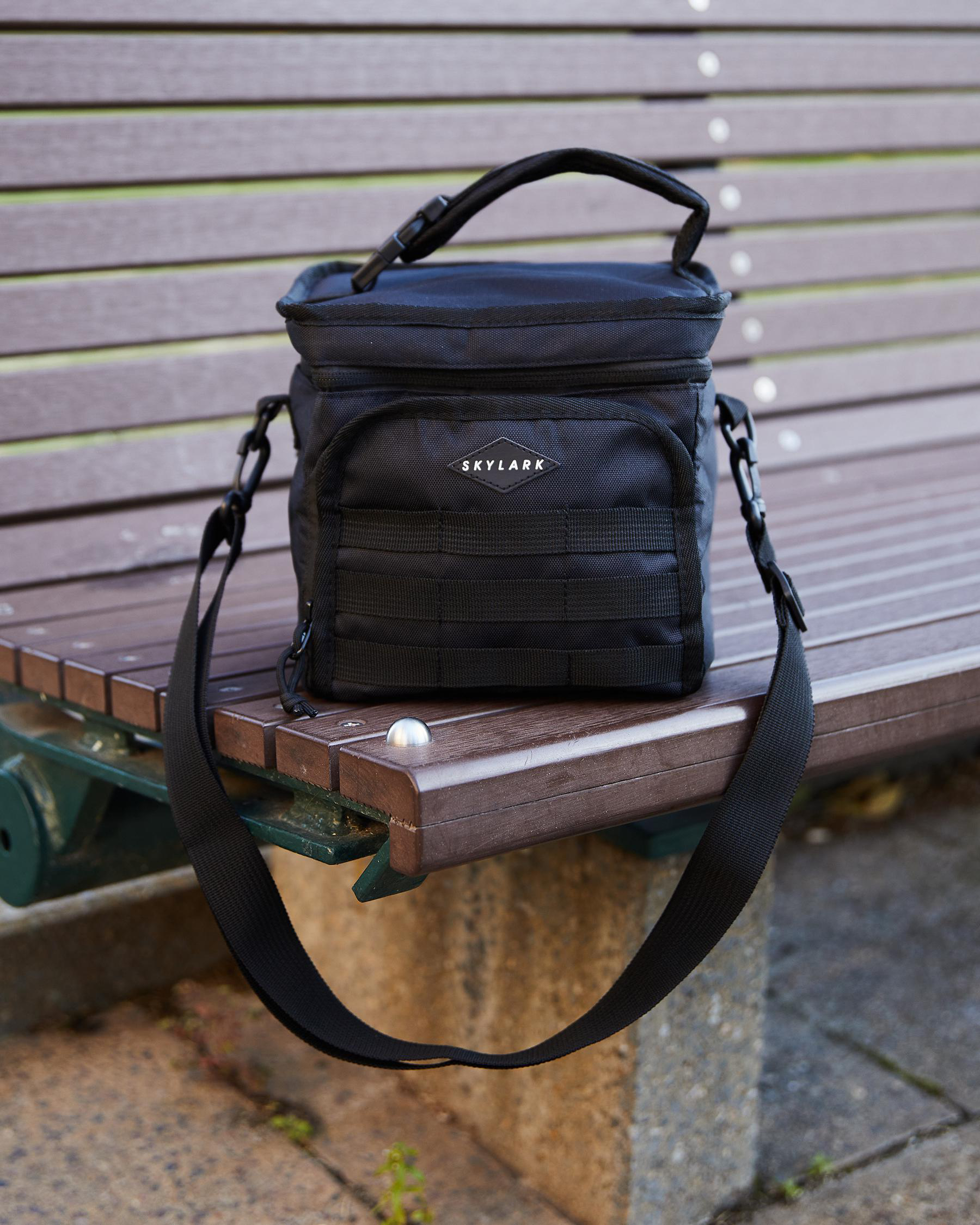 Includes adjustable removable shoulder strap.