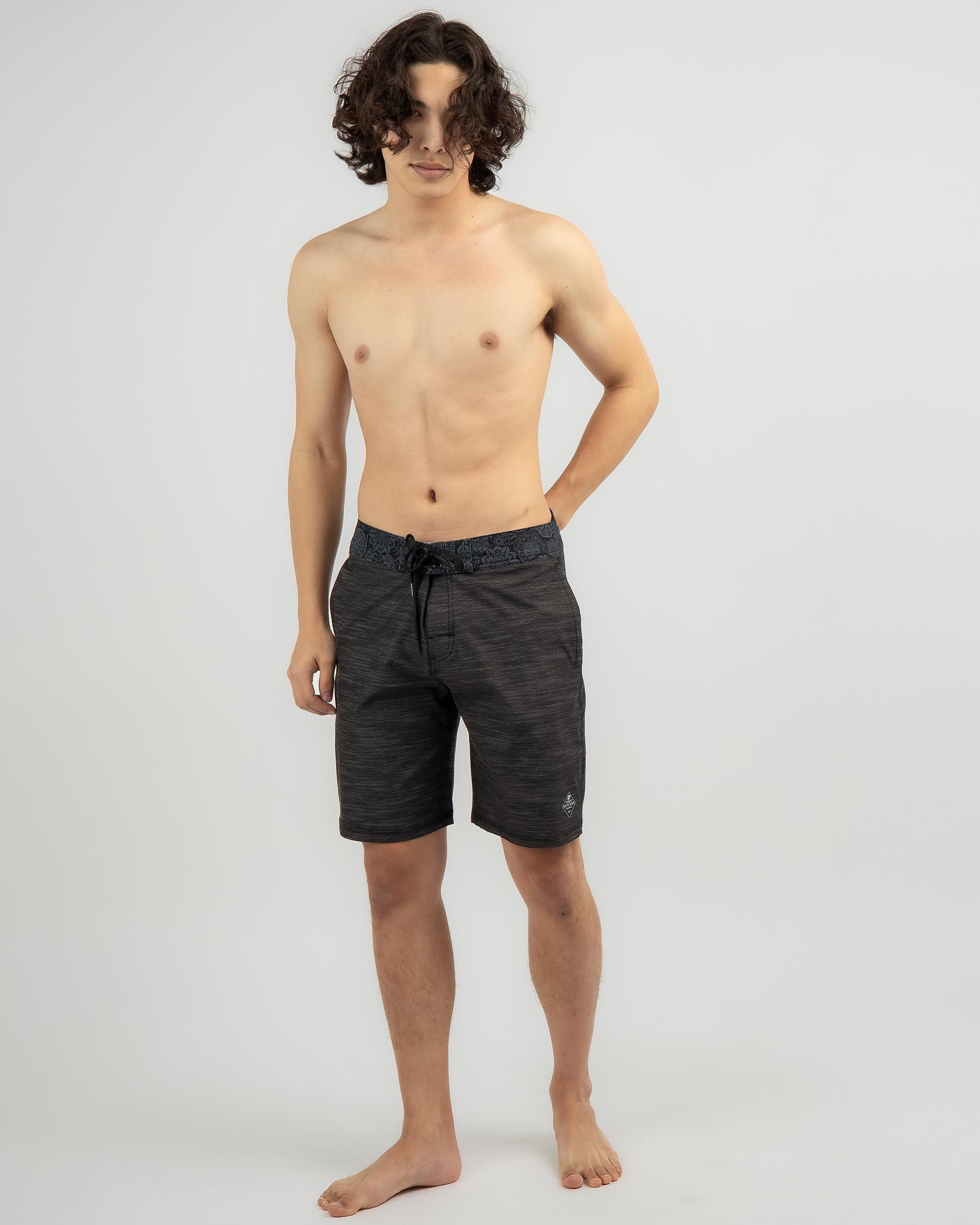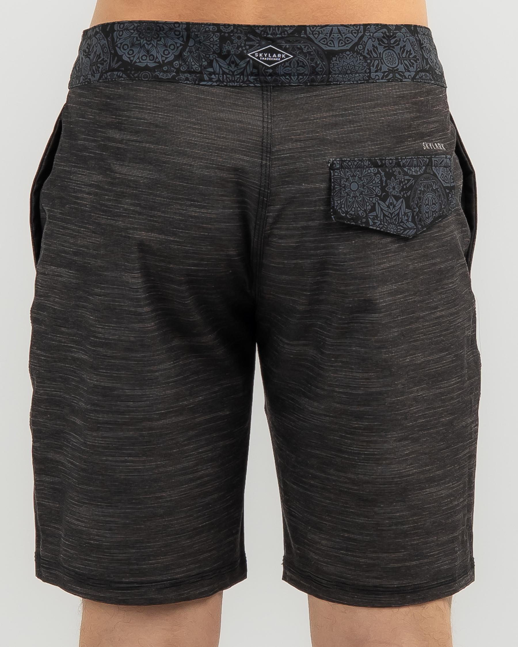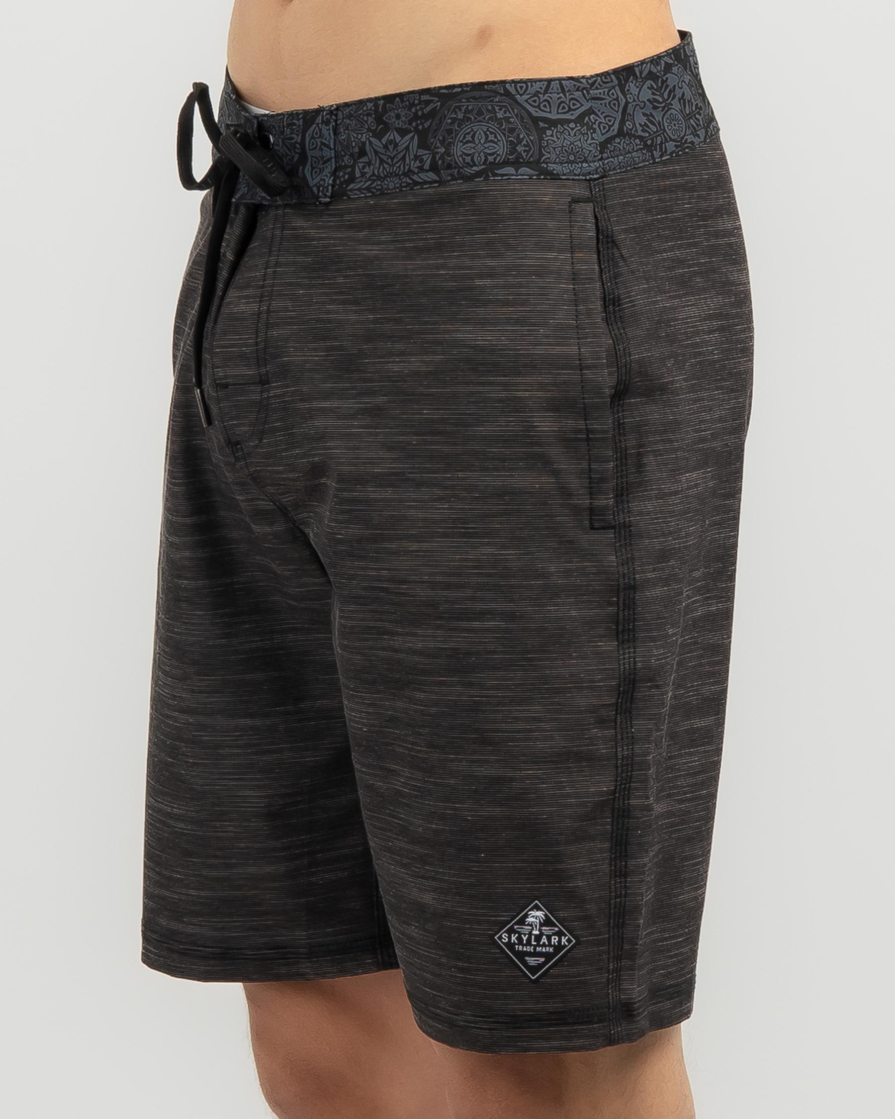 Introducing the Skylark Orbed Board Shorts in sleek black. Classic style meets comfort for all your beach adventures.