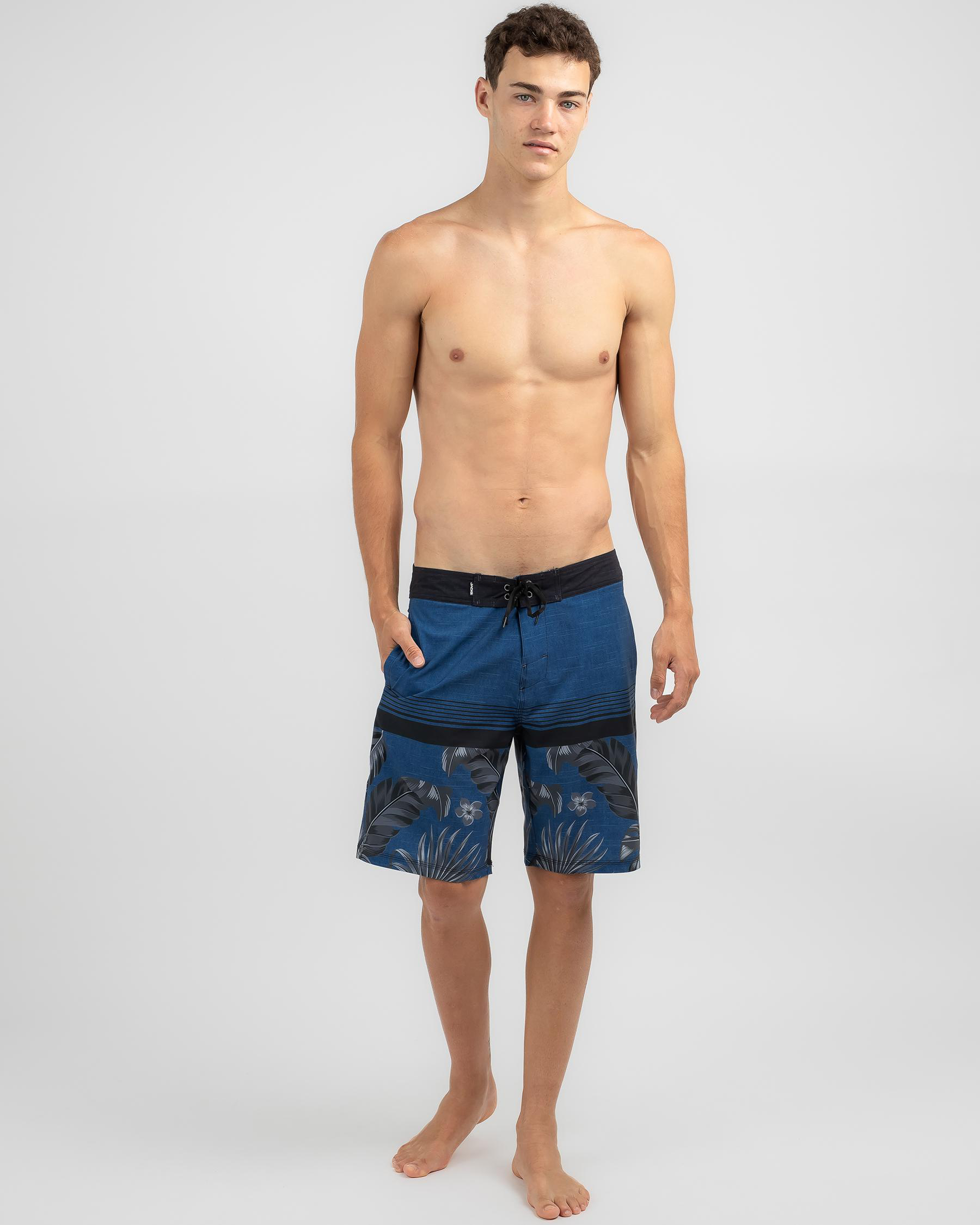 Shop the Skylark Subtropical Board Short in Navy for a sleek and versatile swimwear option. Perfect for beach days and poolside lounging.