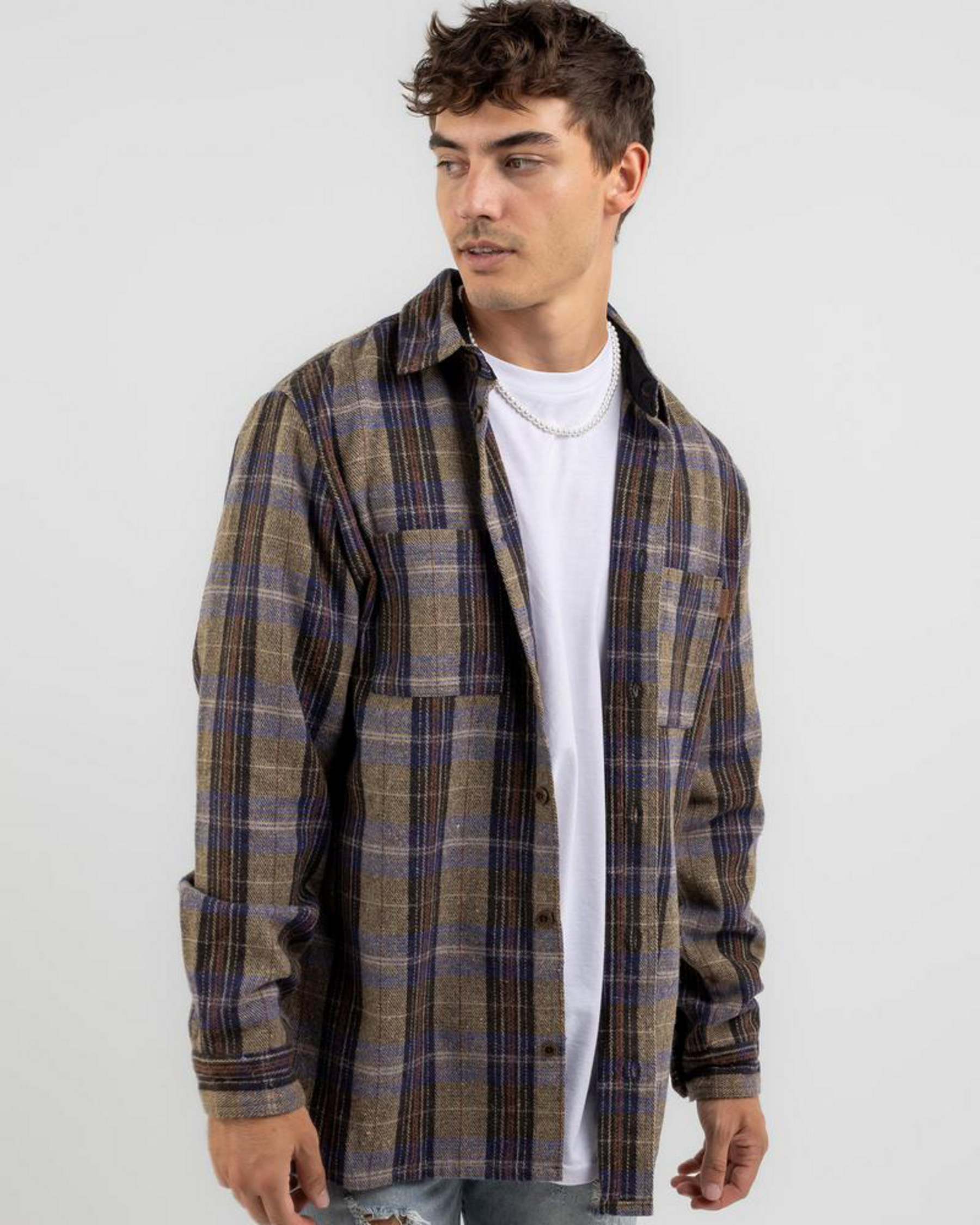 Mens Tweed Long Sleeve Flannel Shirt