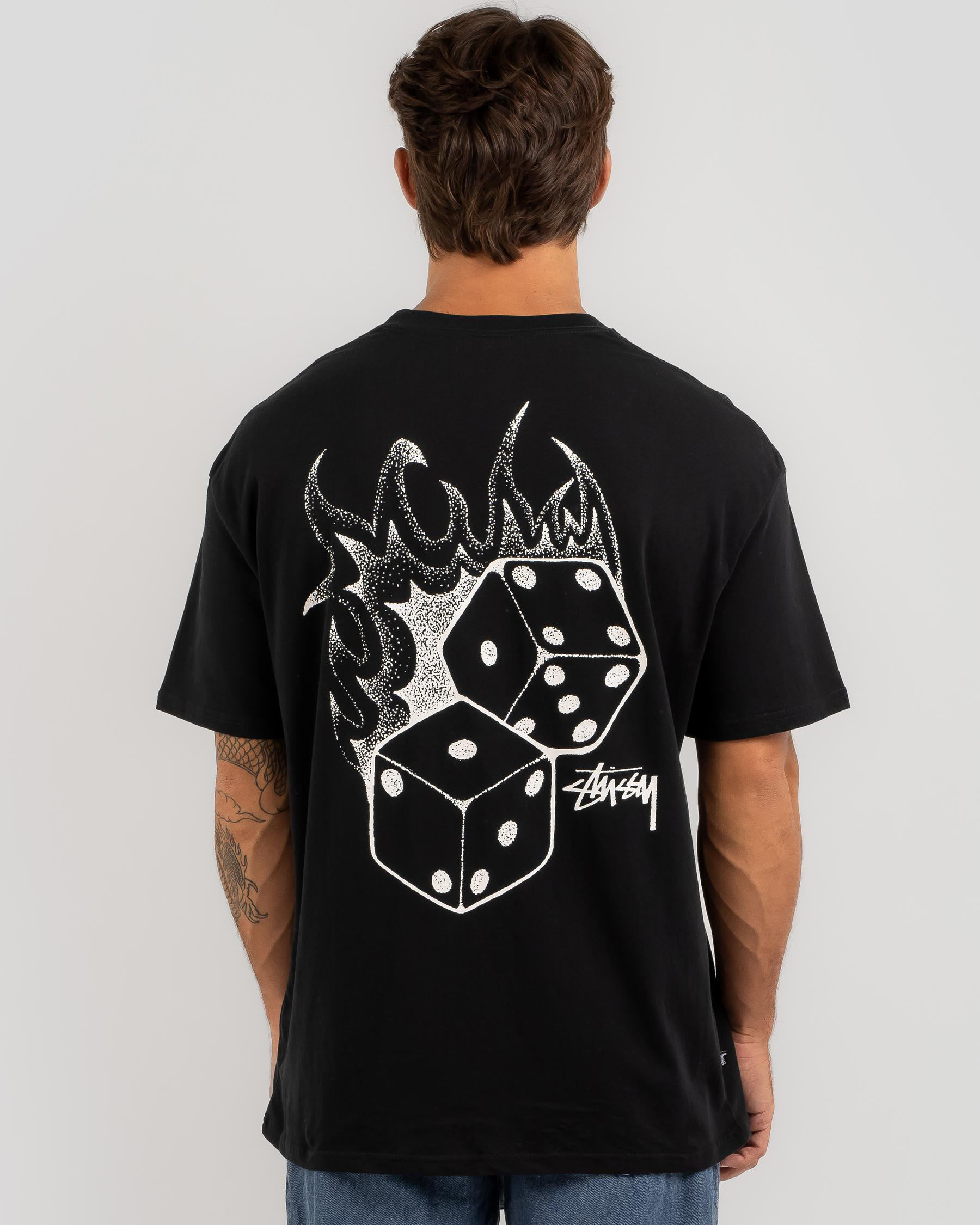 The Stussy Fire Dice T-Shirt in Black features a cool and edgy design, perfect for adding a touch of urban style to your wardrobe.