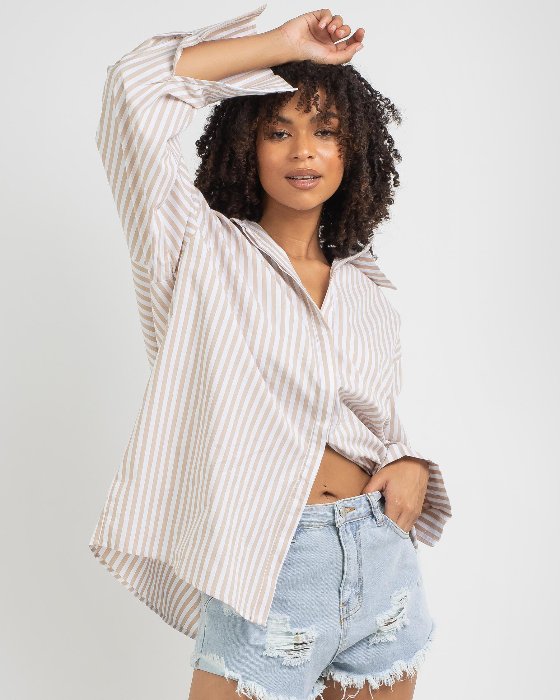 Turn heads in this beige stripe shirt from Beverly Hills Hotel. The perfect addition to your wardrobe for a touch of sophistication.
