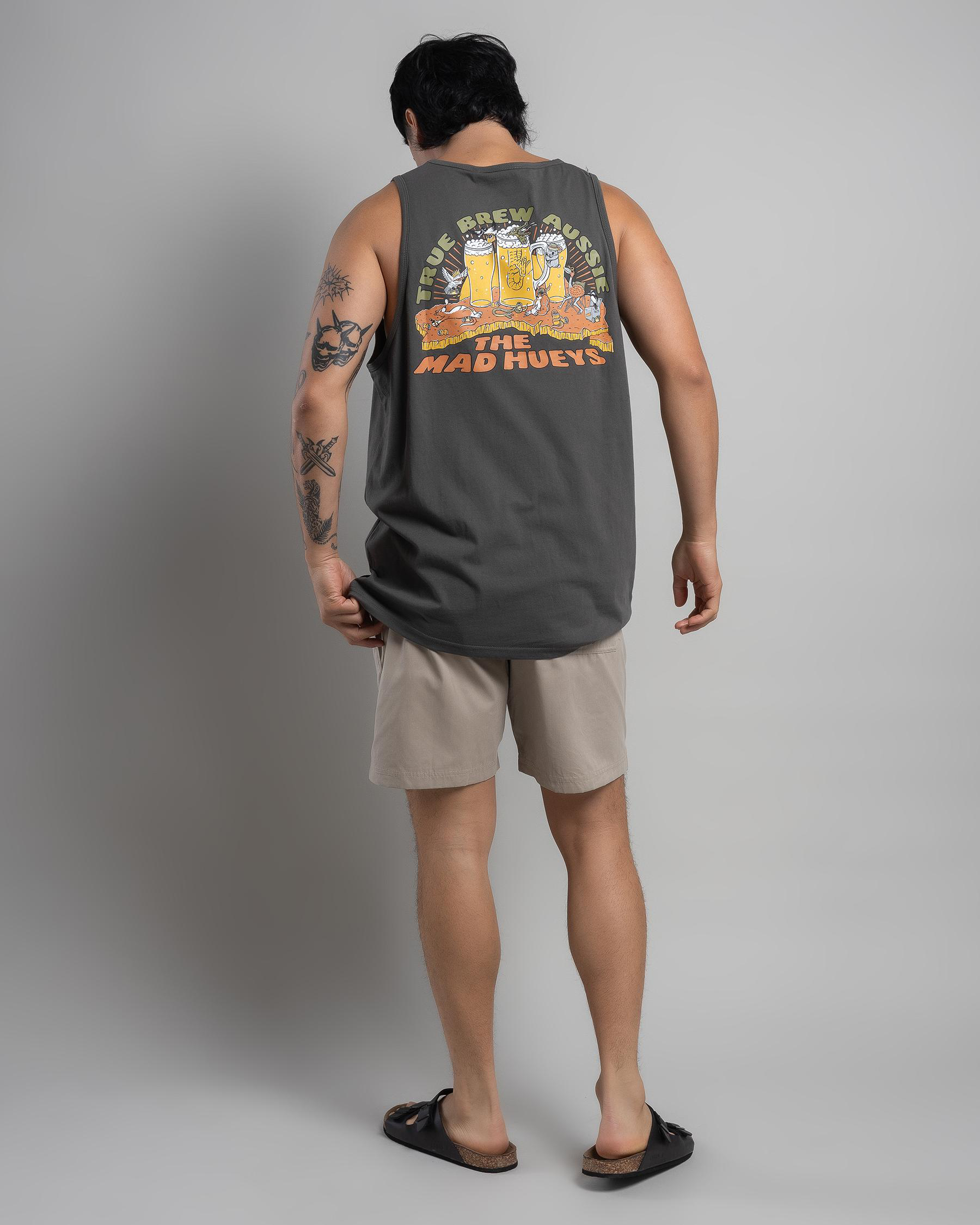 The Mad Hueys True Brew Singlet Tank in Charcoal offers a sleek and stylish look for any casual occasion.