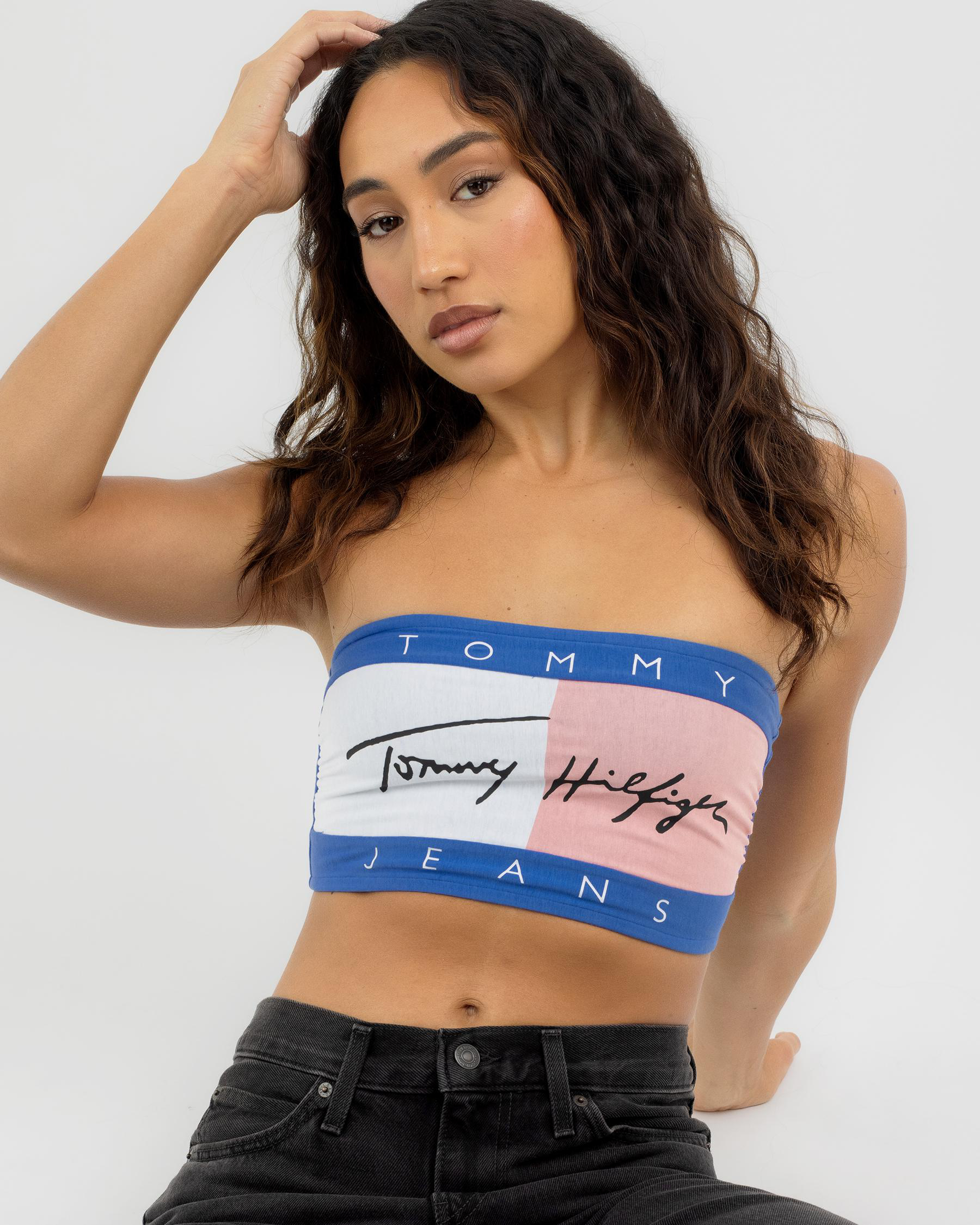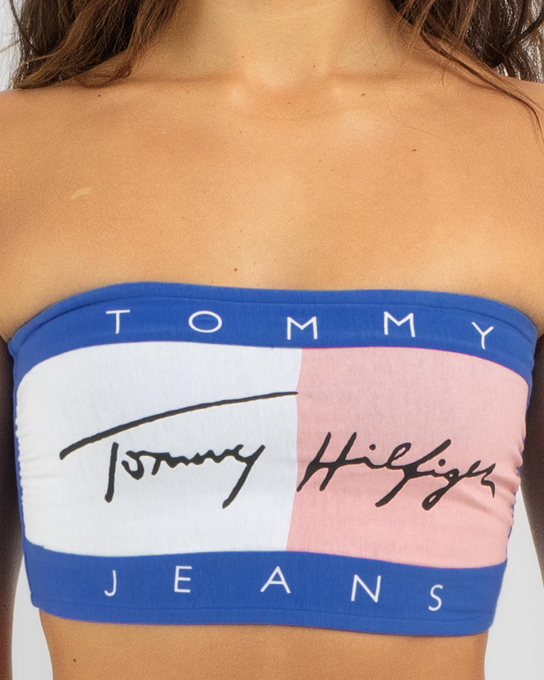 Rock the Tommy Hilfiger Heritage Flag Bandeau Top in striking Empire Blue. A timeless piece that exudes classic style and bold confidence.