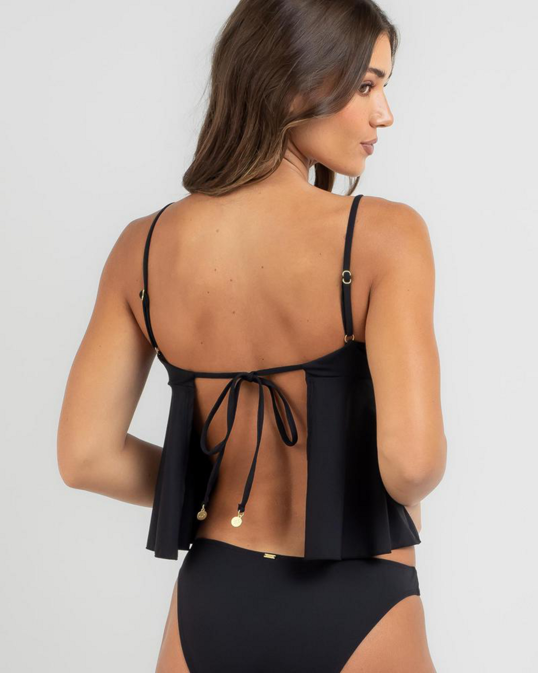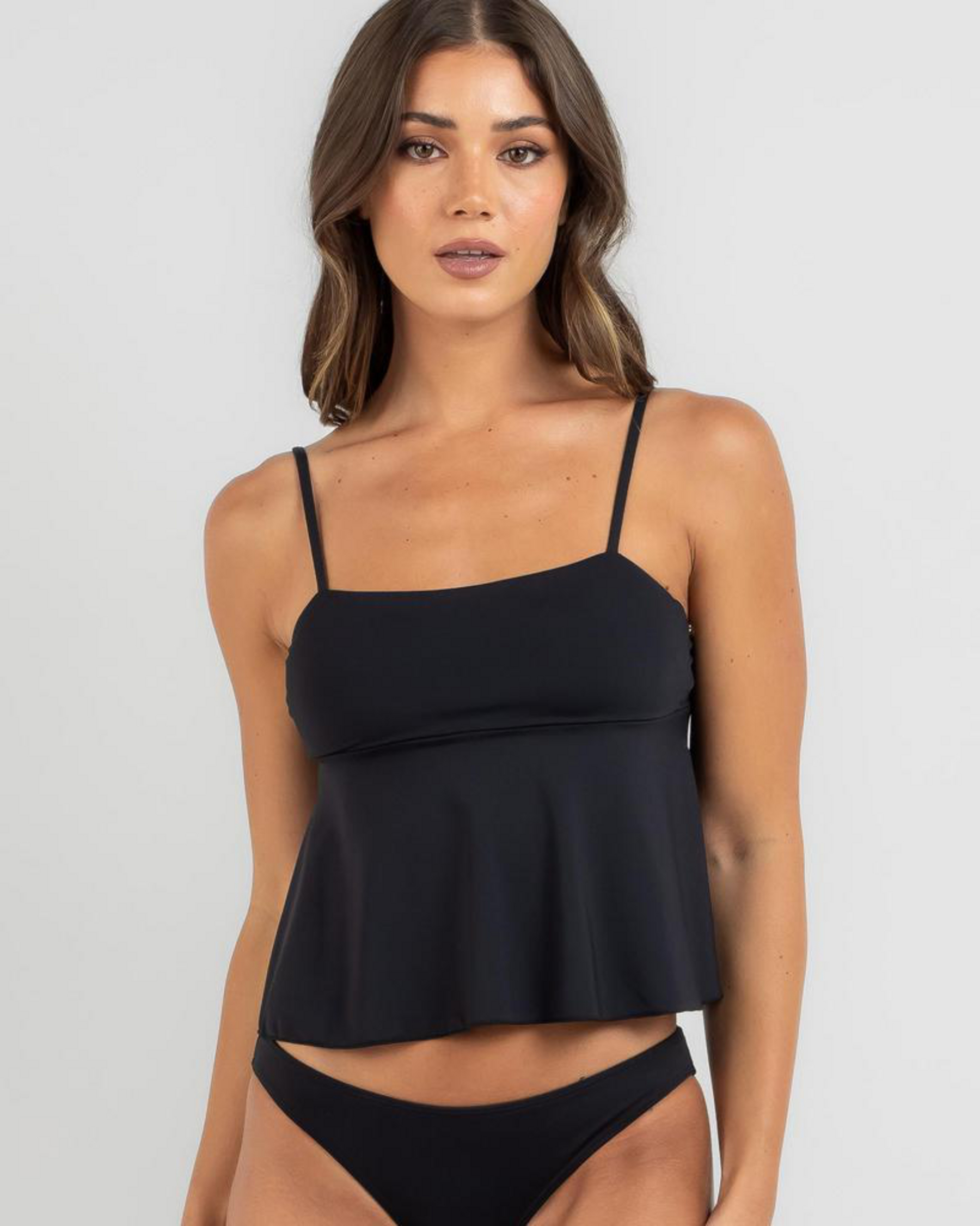 The Topanga Tara Tankini Top in Black is a sleek and versatile swimwear piece that will keep you looking stylish at the beach or pool.