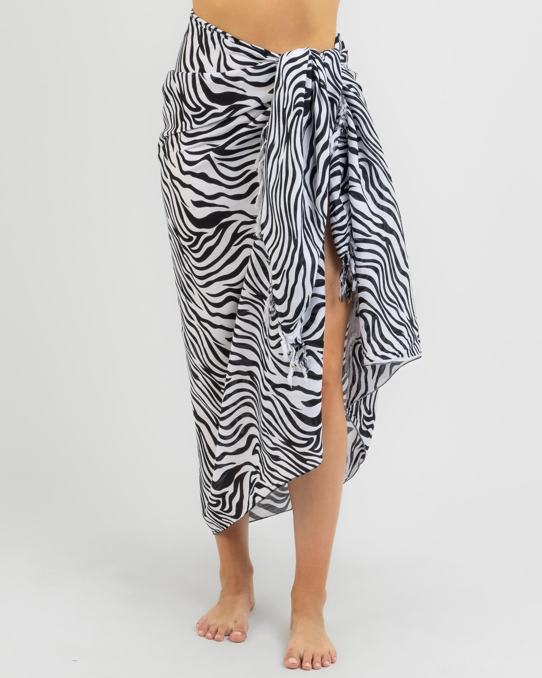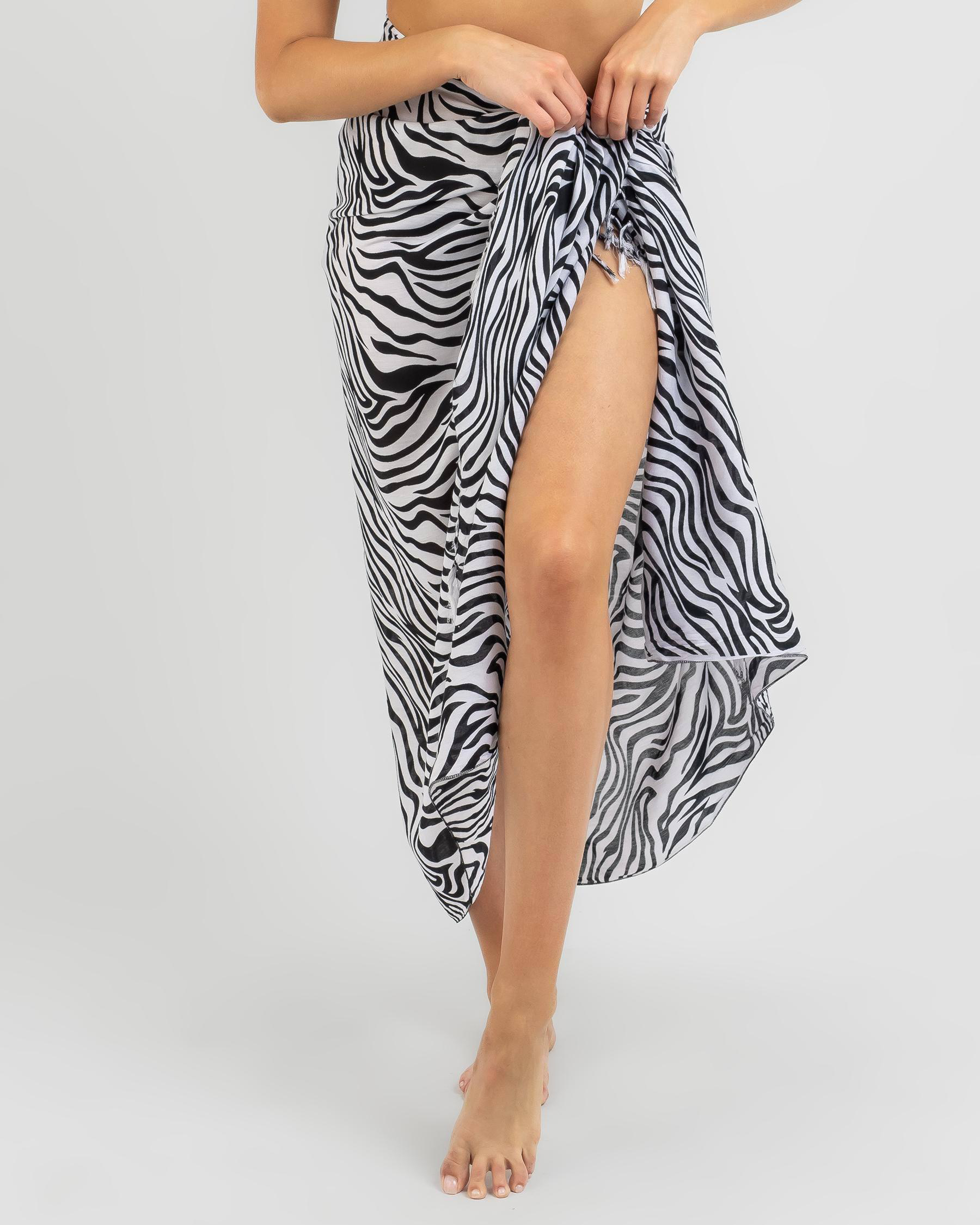 The Topanga Zane Sarong in Zebra is a versatile and stylish beach accessory, perfect for adding a touch of wild flair to your swimwear ensemble.