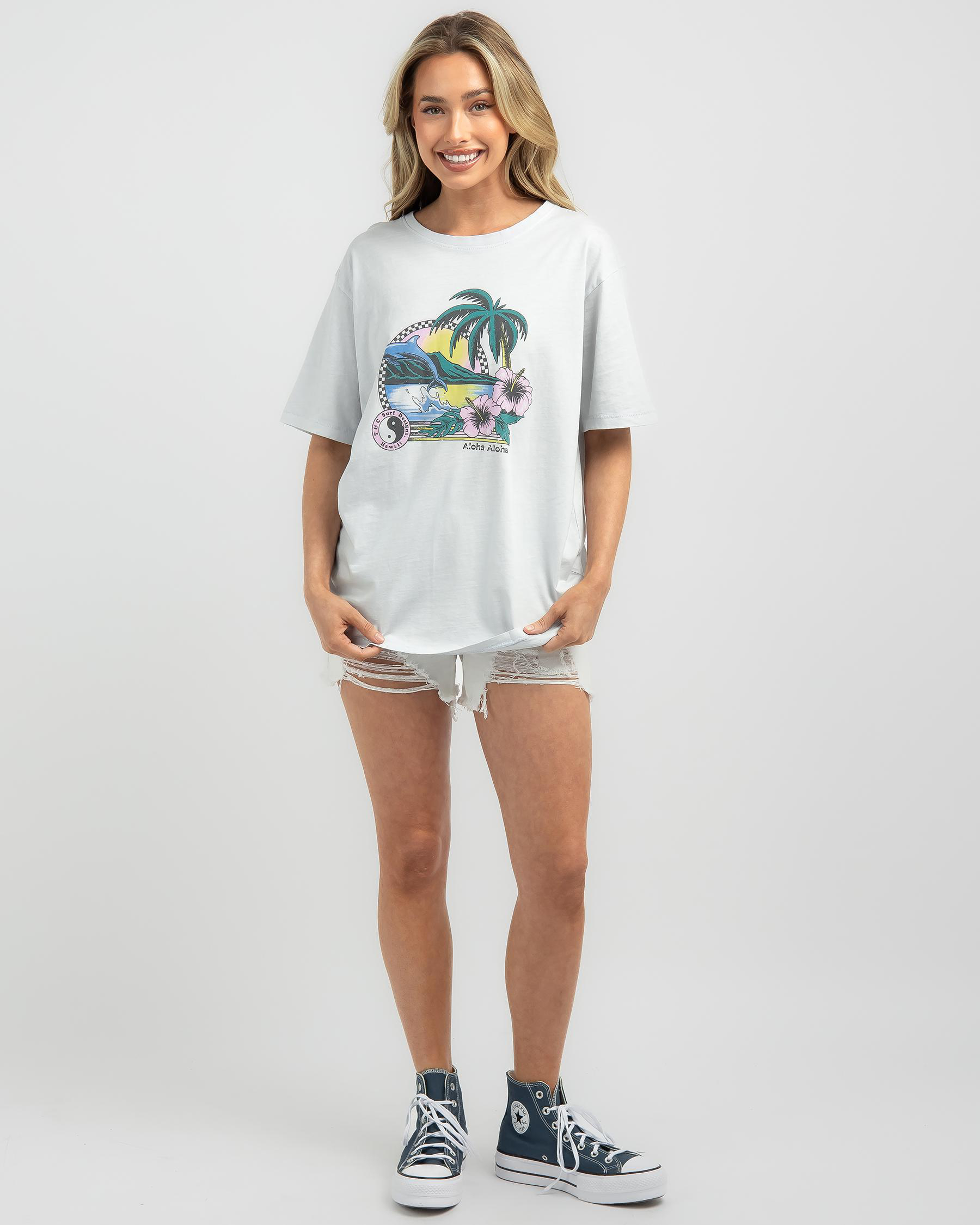 Add a touch of seaside charm to your wardrobe with the Town & Country Surf Designs Aloha Holiday T-Shirt in washed blue.