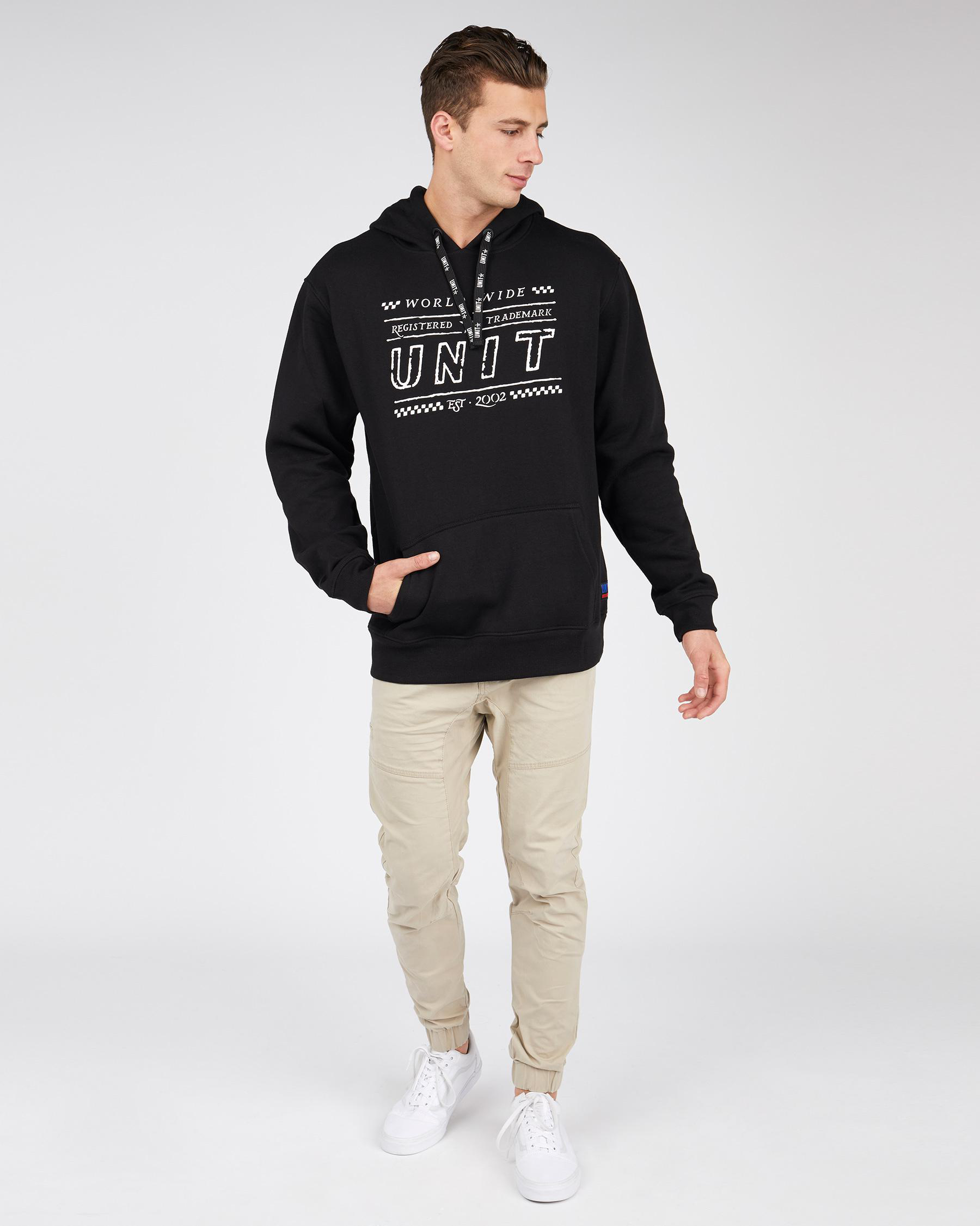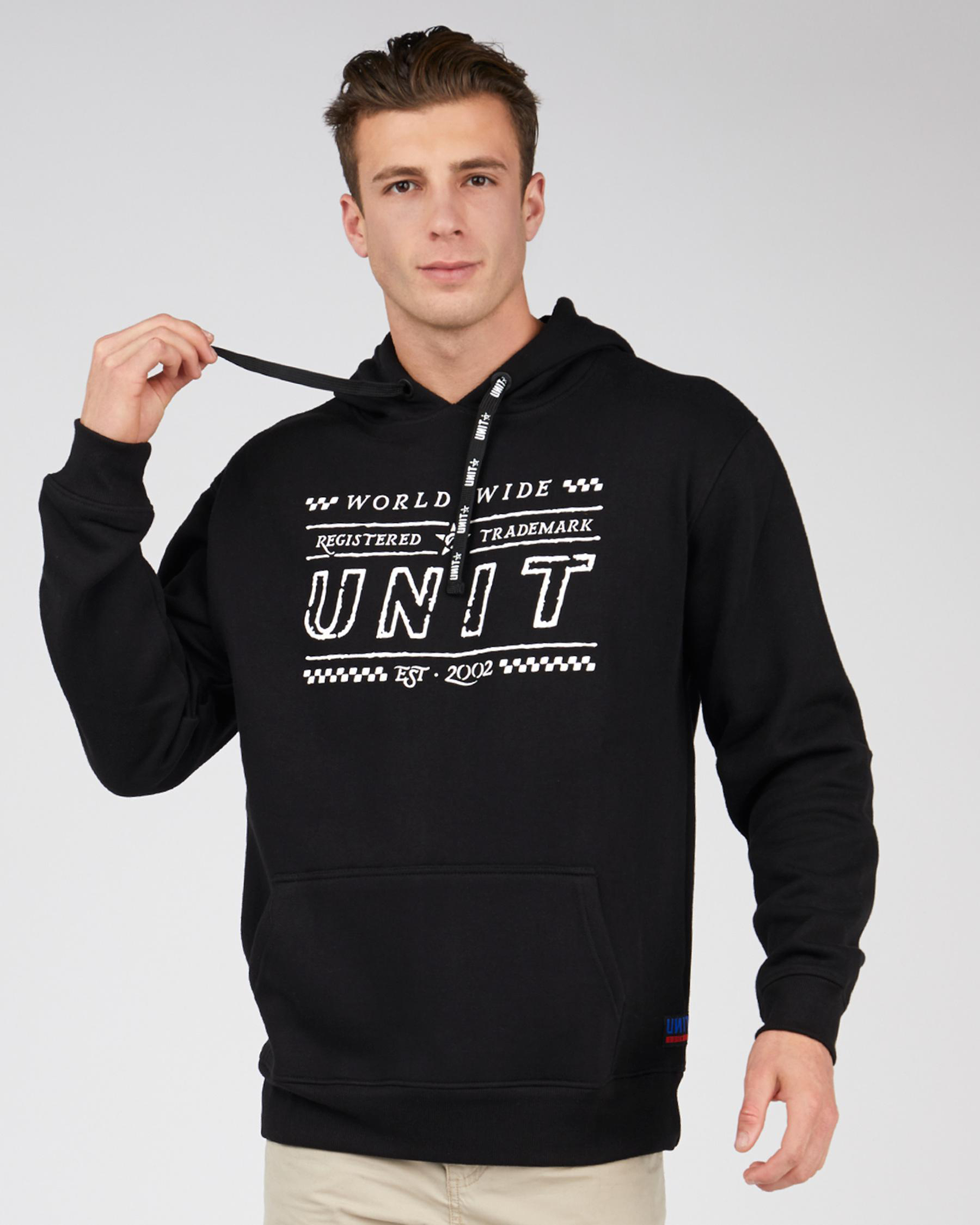 Ribbed cuffs, Ribbed hem, Joey pockets, Draw cord hood