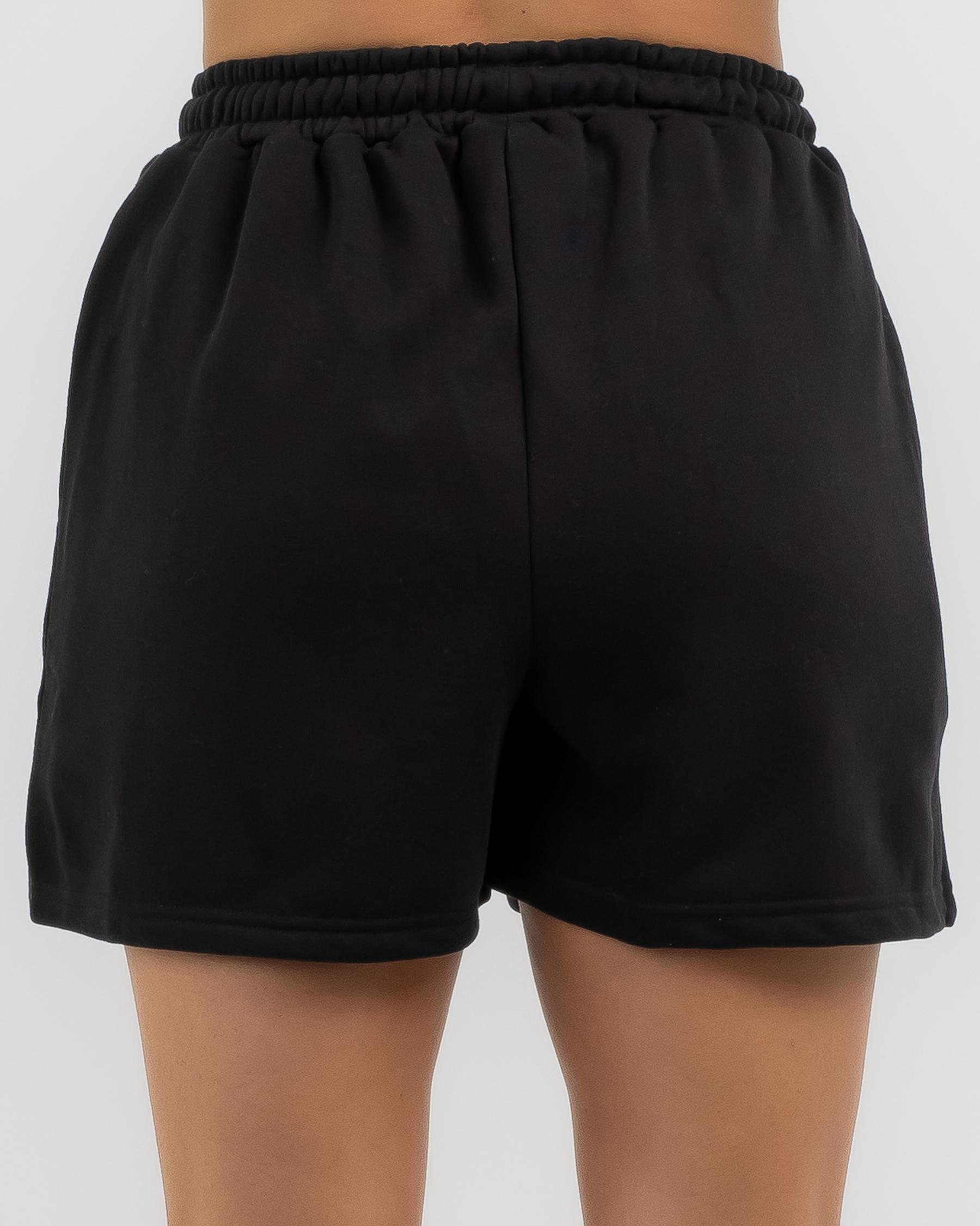The Womens Husky High Waist Fleece Short in black is a sleek and comfortable option for everyday wear.