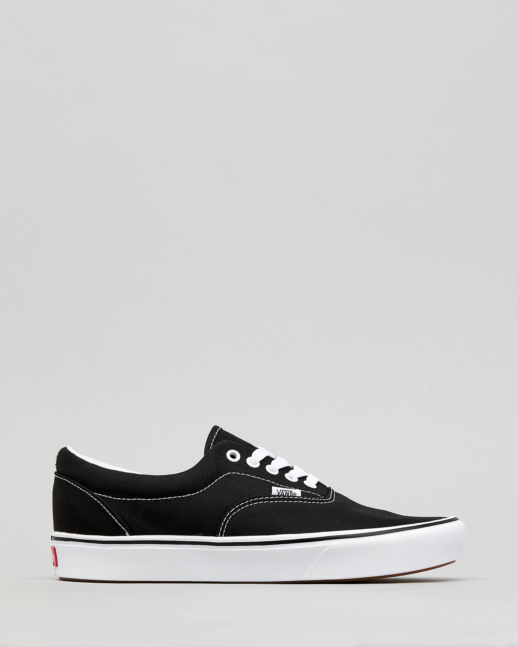 The Vans Comfycush Era Shoes in classic black/true white offer timeless style and all-day comfort in a sleek, versatile design.