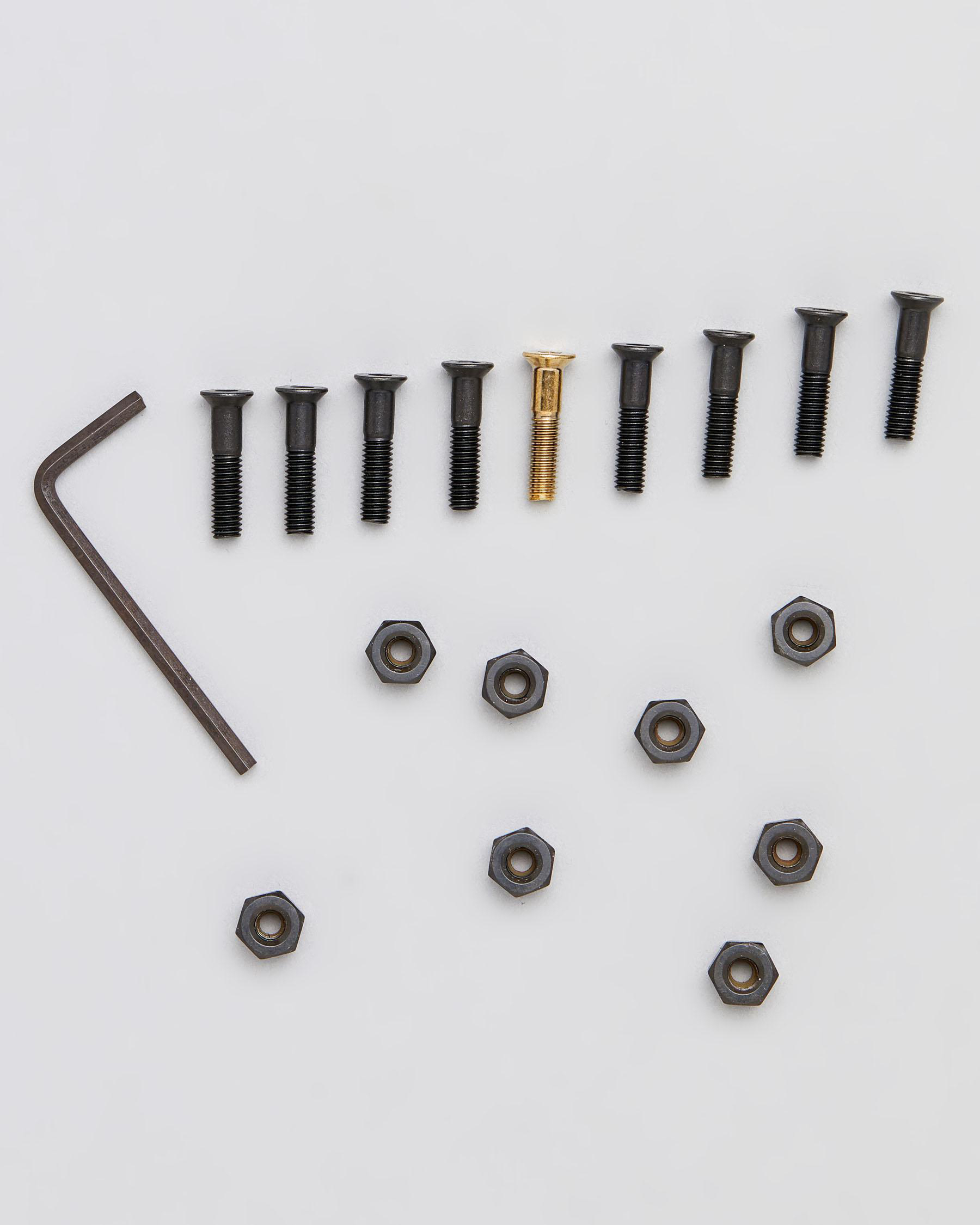 Includes 8 black screws, 1 allen wrench and key packaged inside of a grinder.