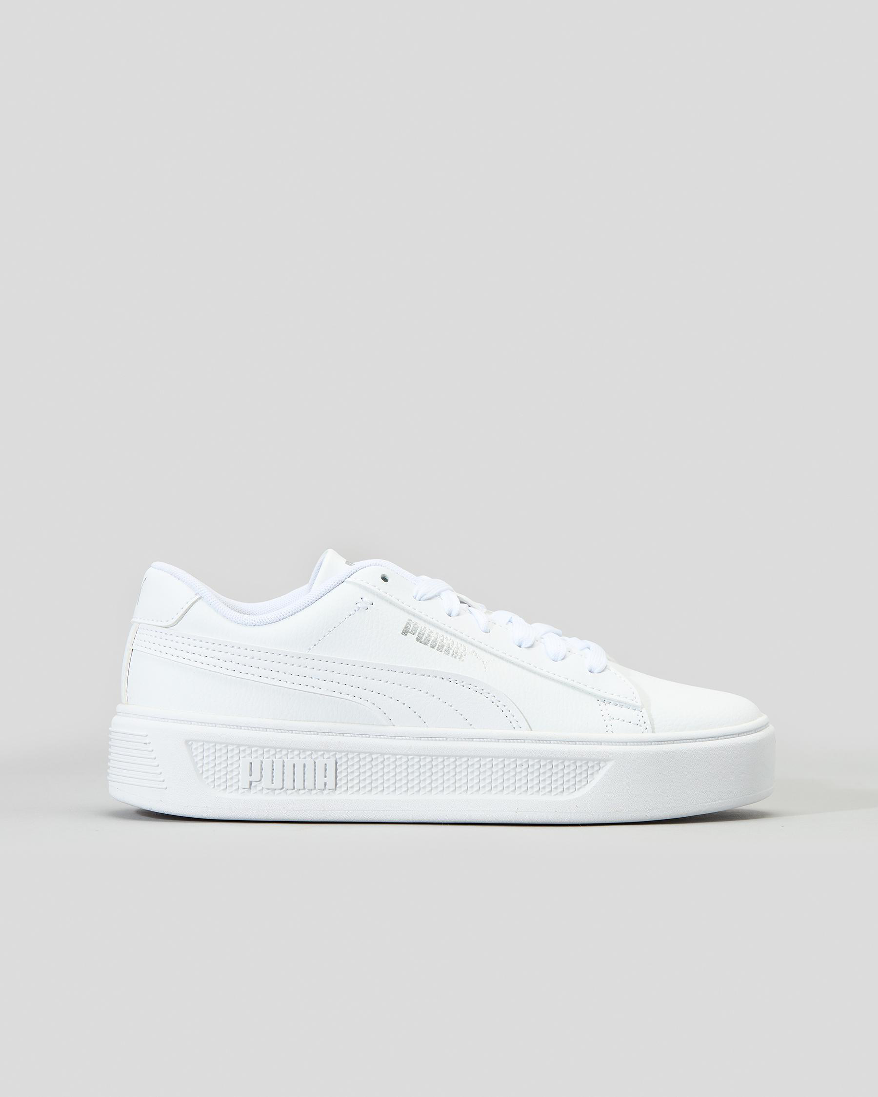 Elevate your style with the Puma Smash Platform V3 Shoes in crisp Puma White. Perfect for adding a touch of sporty sophistication to any outfit.