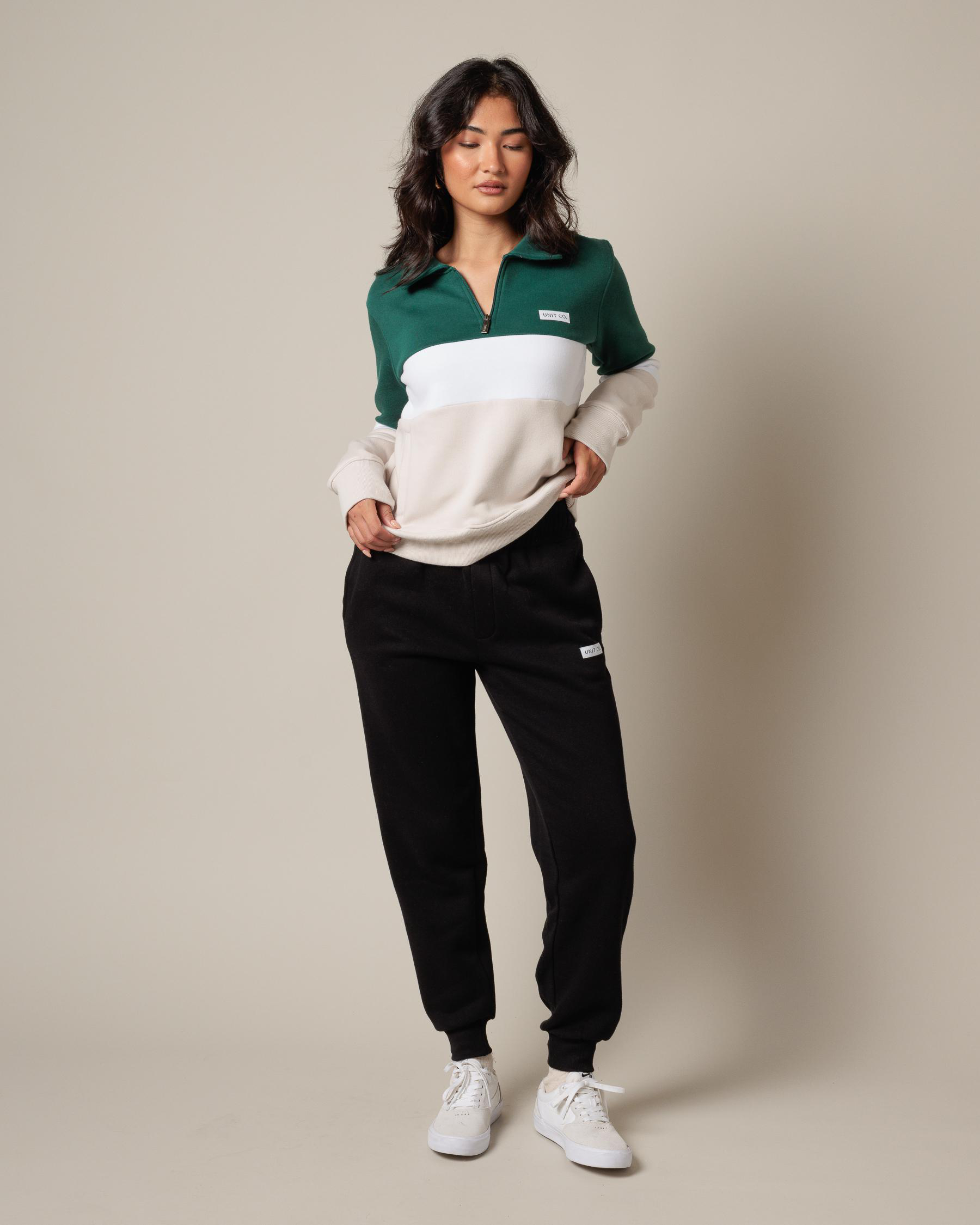 Front hand pockets, Ribbed cuffs, Ribbed hem