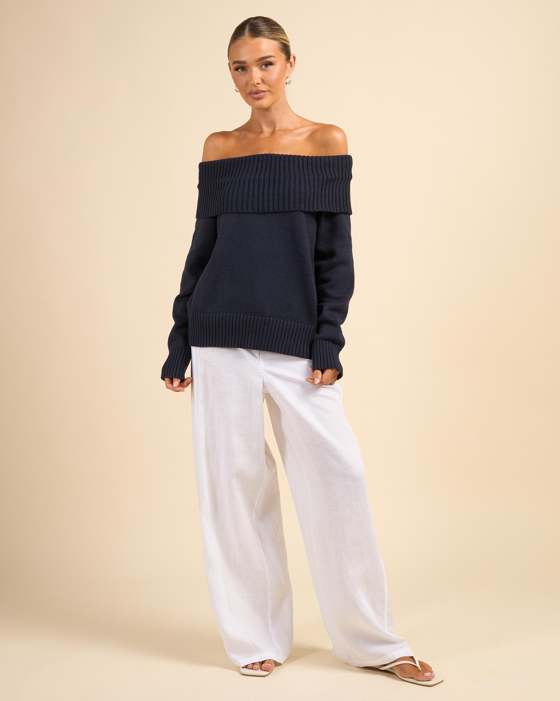 Veriti Off Shoulder Knit Jumper