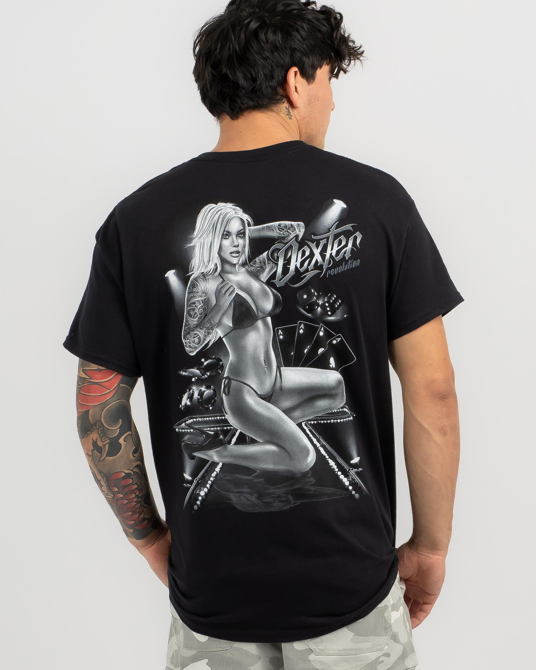 the Dexter Pokerface T-Shirt in Black for a sleek, edgy look. Perfect for poker nights or casual outings.