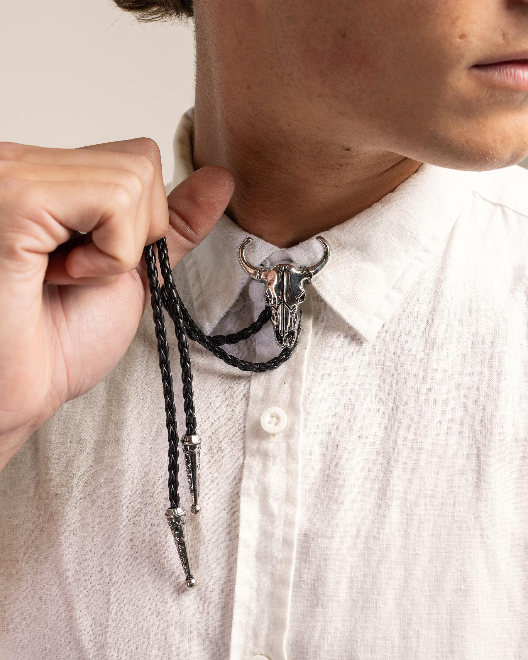 Mens Bull Bolo Tie Necklace