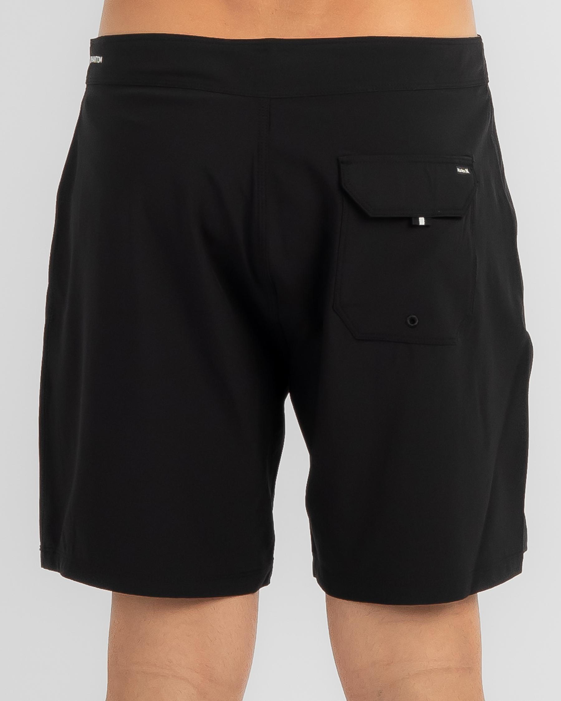 The Hurley Phantom One and Only Solid Board Shorts in Black are a must-have for your beach wardrobe. Stay sleek and stylish with these versatile shorts.