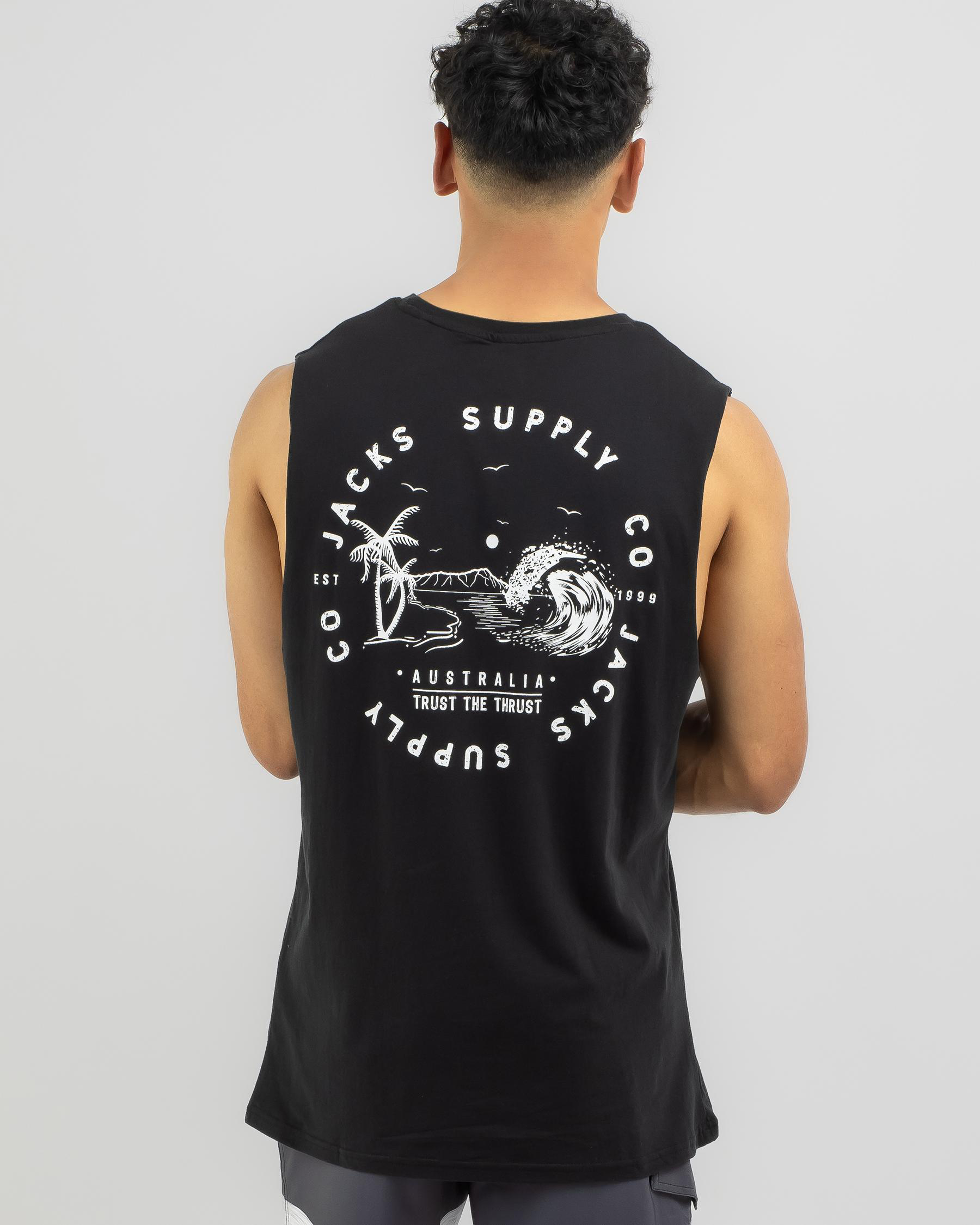 The Jacks Getaway Muscle Tank in Black is a versatile addition to your wardrobe, perfect for effortless style and easy layering.