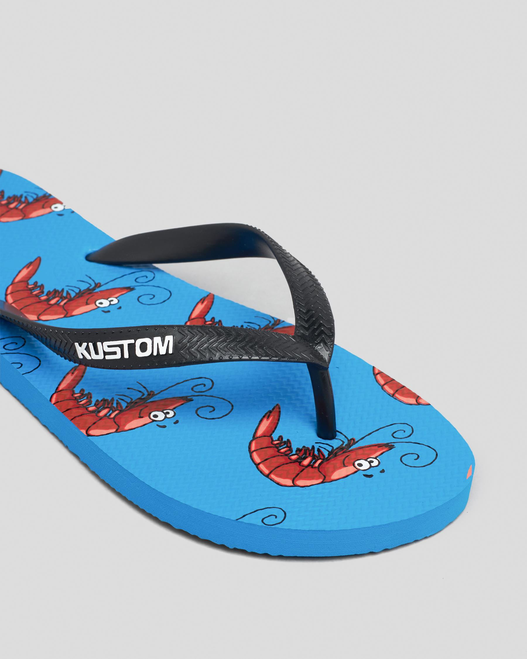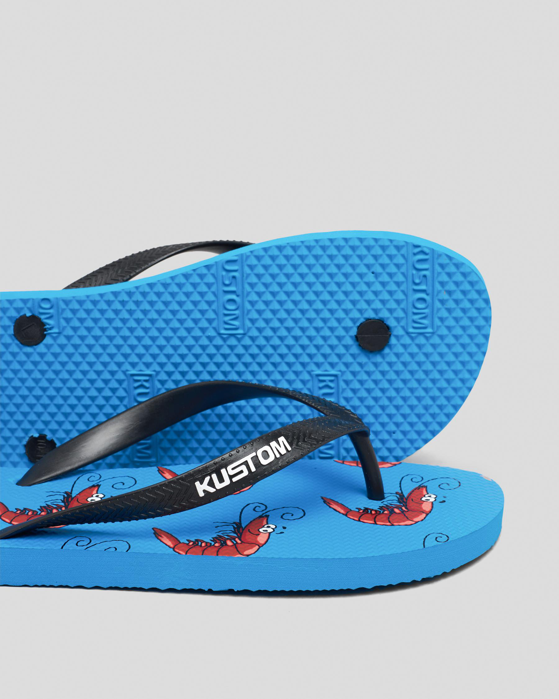 Shop Kustom Blend Base Shrimply The Best Thongs in Blue for a pop of color and ultimate comfort for sunny days by the beach​.