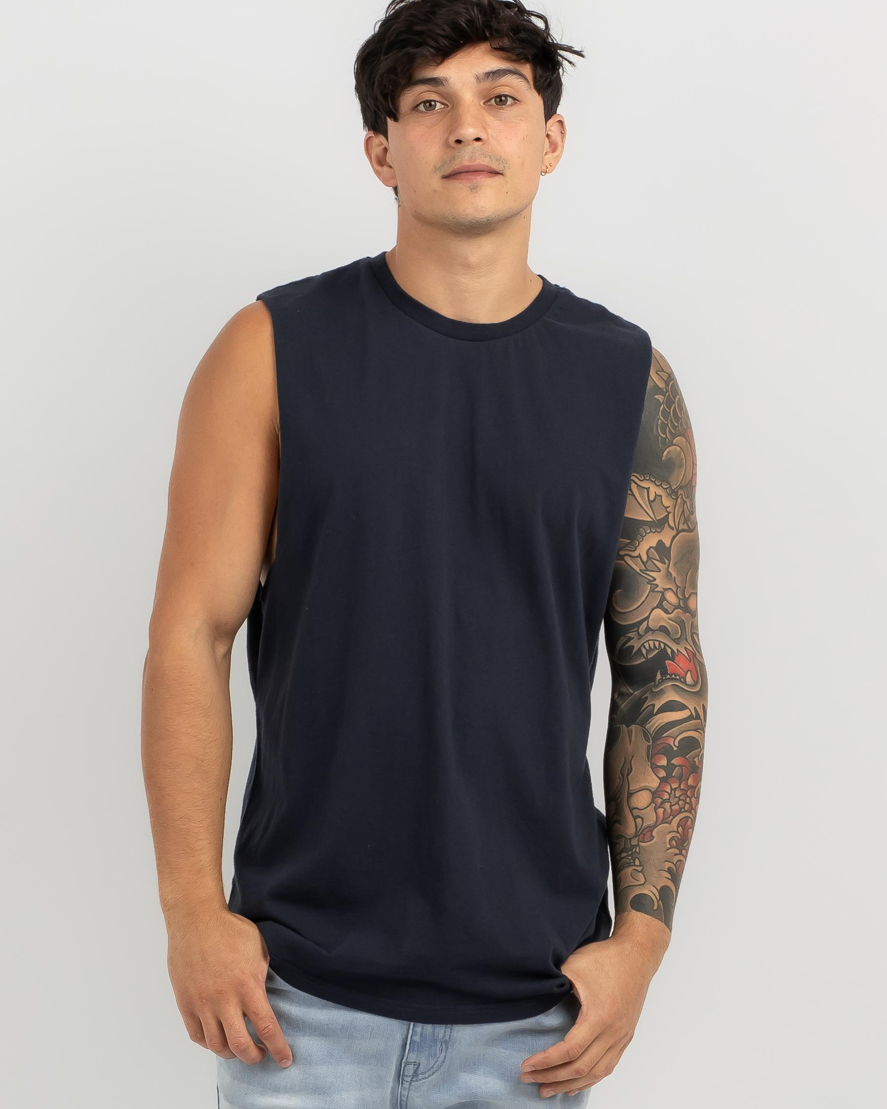 Shop the Lucid Essential Muscle Tank in Navy for a sleek and versatile addition to your wardrobe. Perfect for casual days and layering with your favorite pieces.