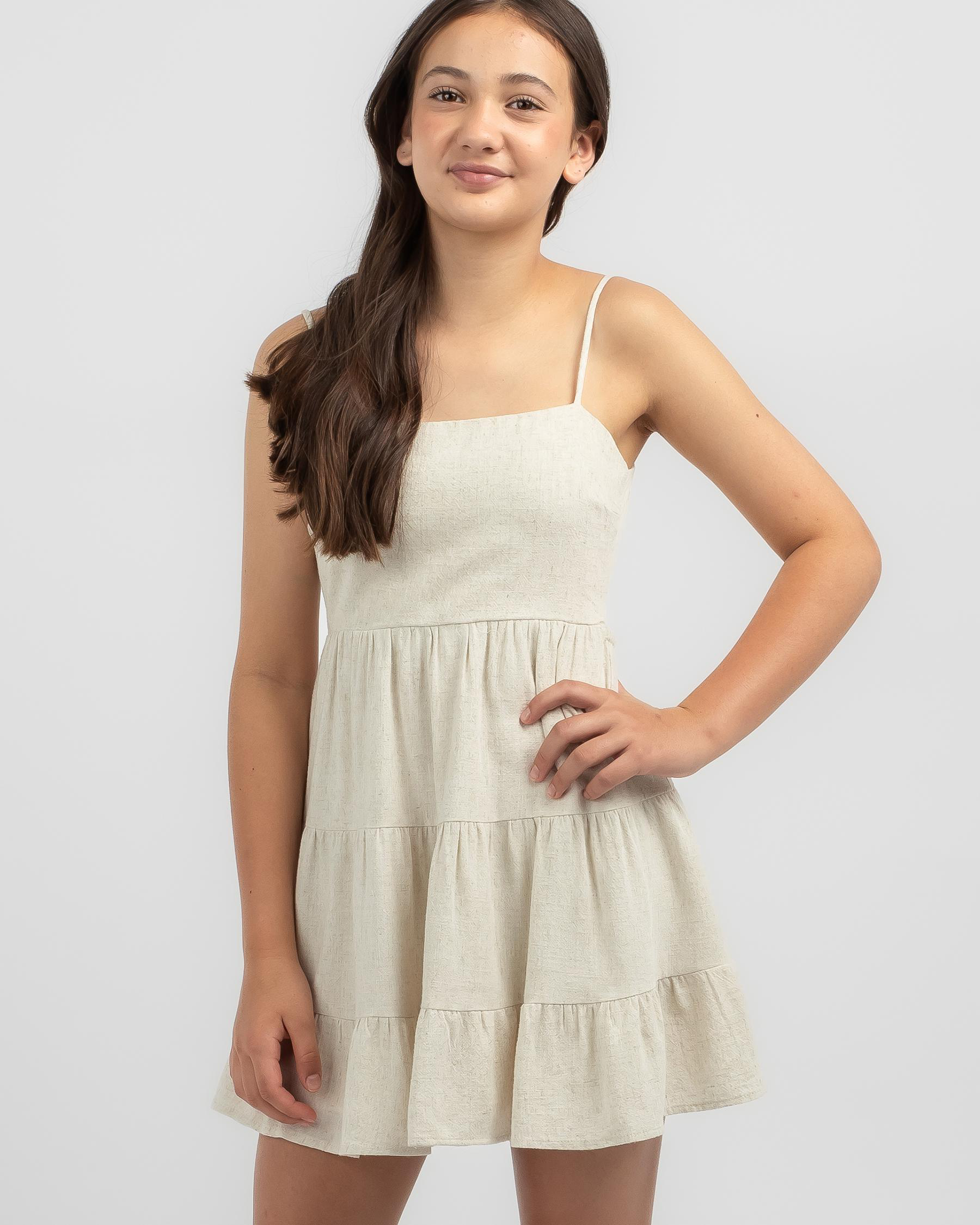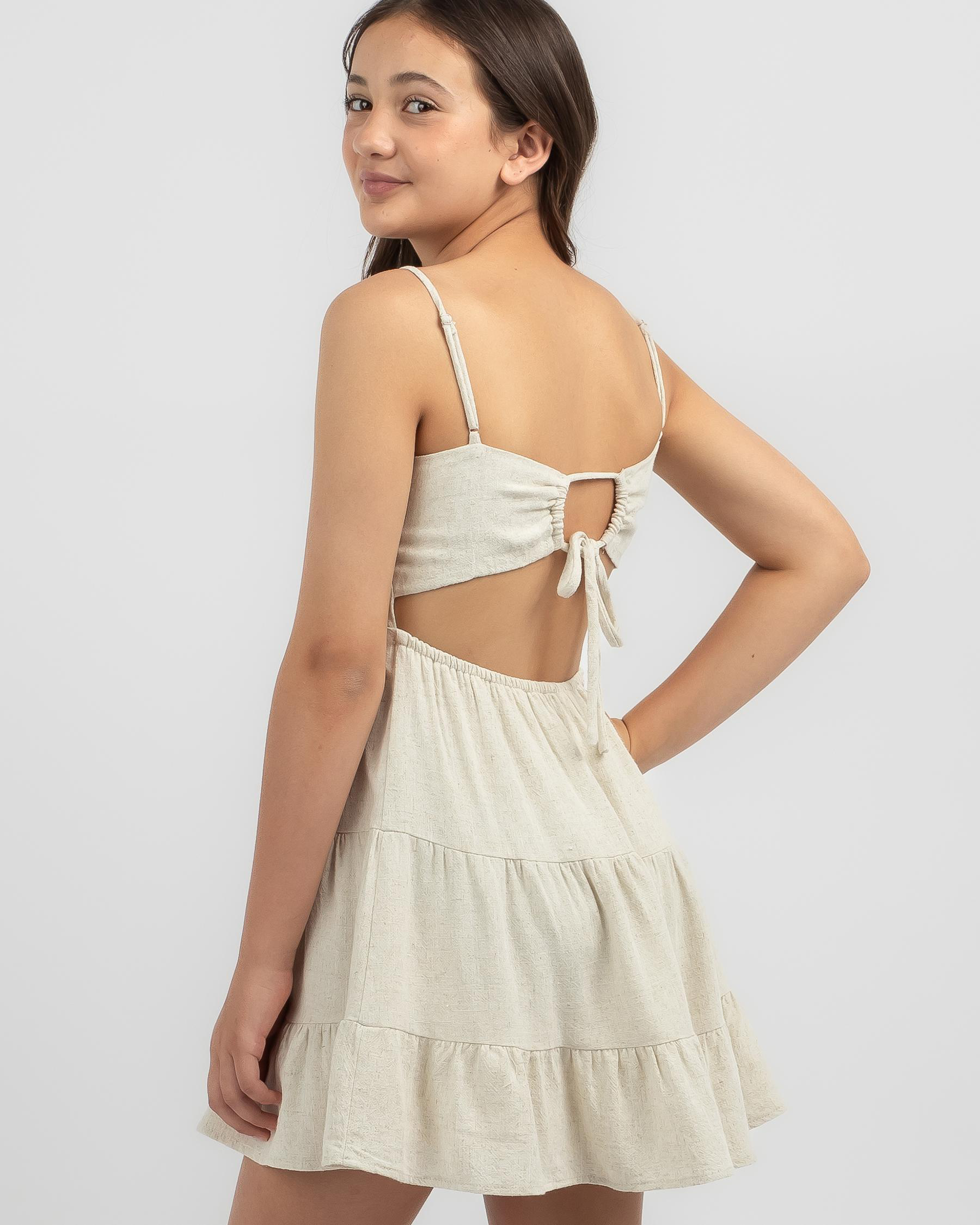 The Mooloola Girls' Tabetha Dress in White is a charming and elegant choice for any special occasion. Perfect for a stylish and chic look.