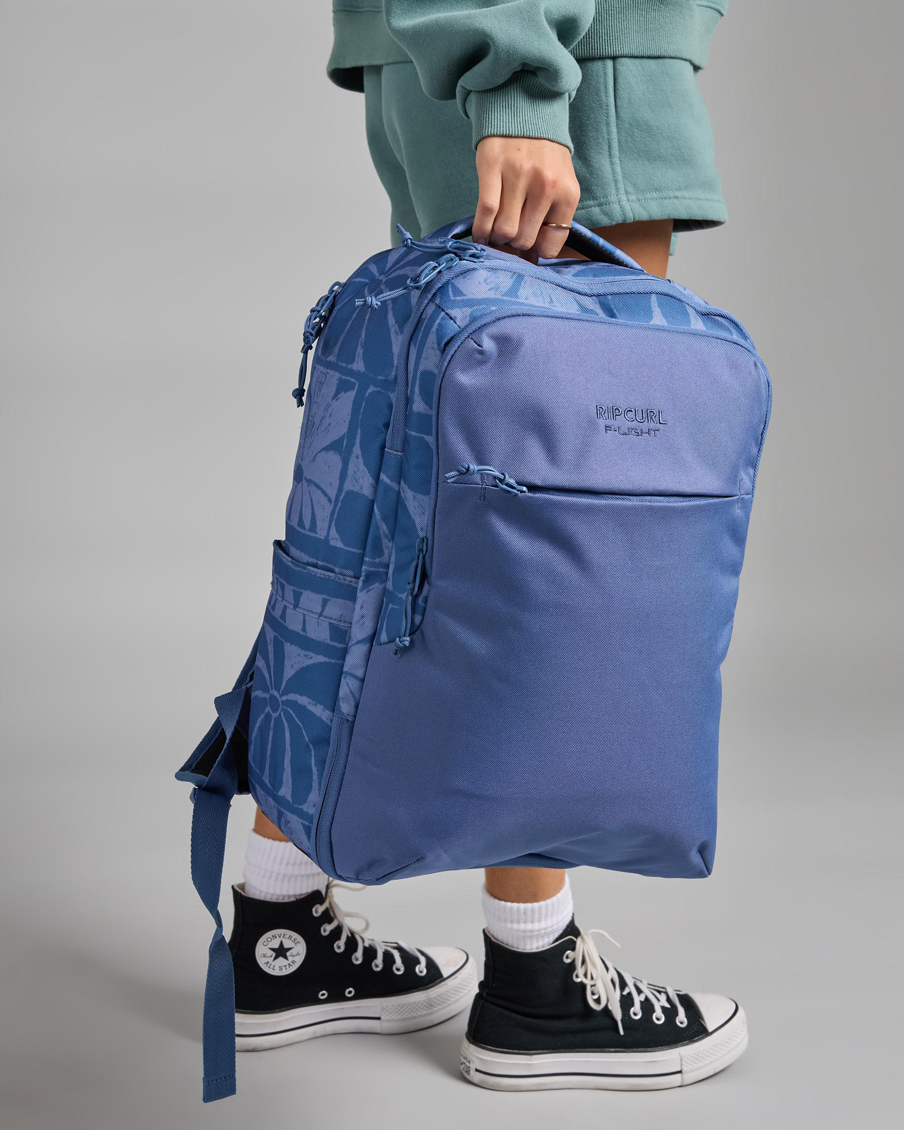 Handle, Padded straps, Padded backpanel, Sternum straps, Fits A4 sized folders and books, Large main compartment, Internal zipped pocket, Waterbottle pouch, External pockets
