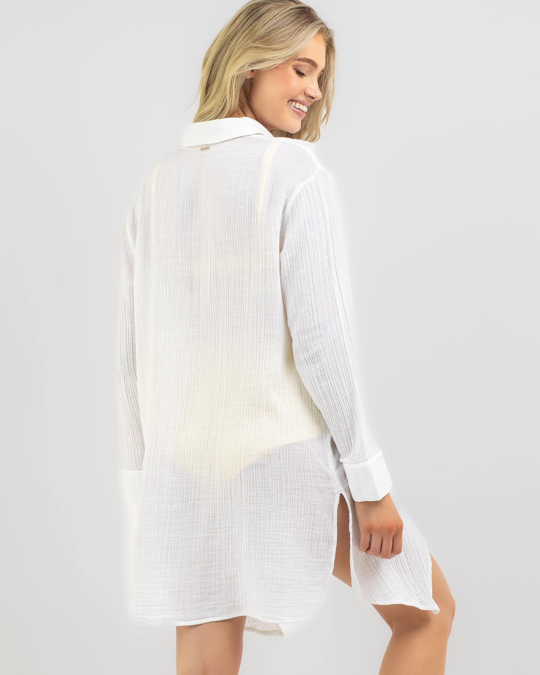 Roxy Sun and Limonade Beach Cover in Bright White is a chic and versatile cover-up for your beach days.