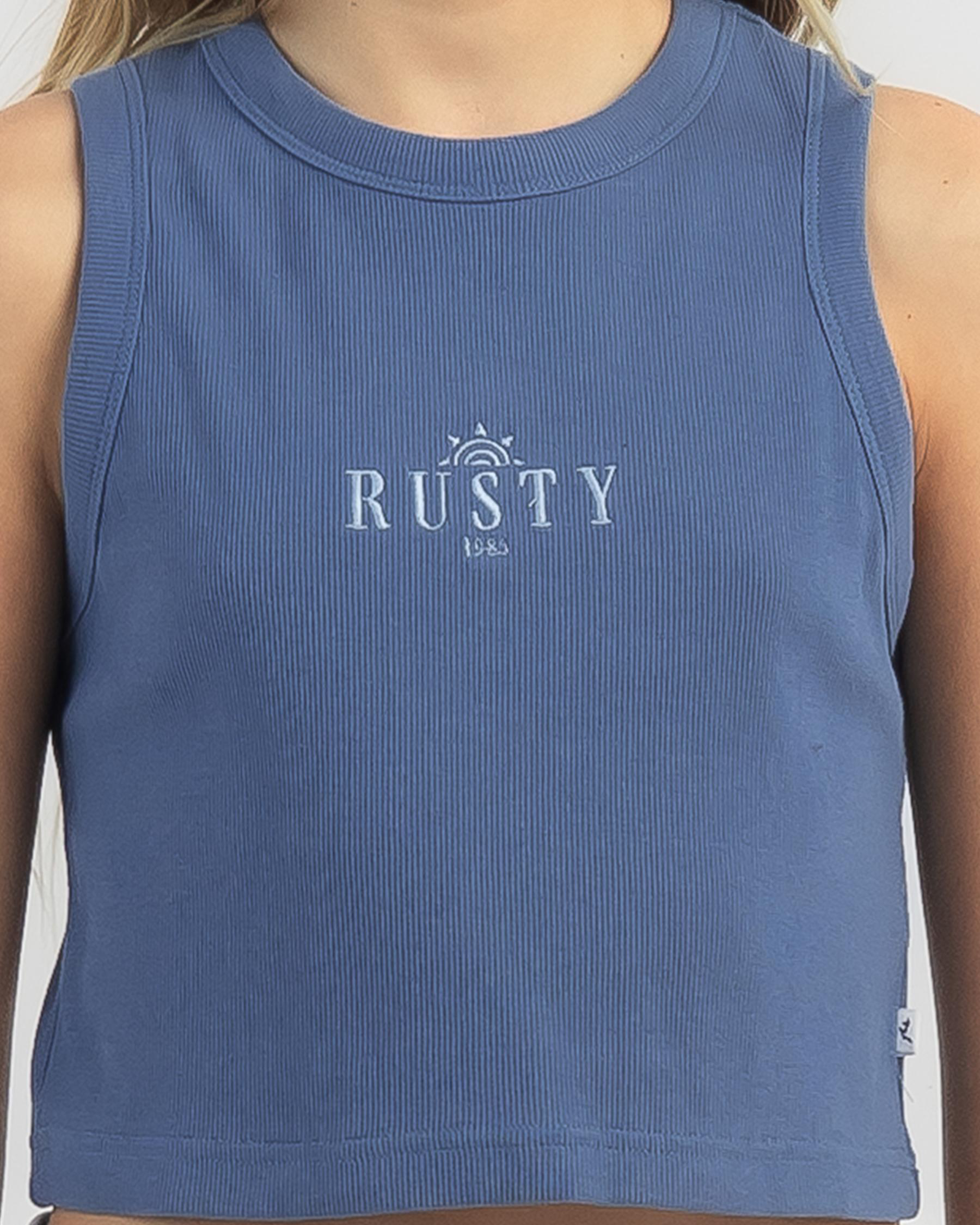The Rusty Girls' Sunrise Racer Tank Top in Apricot Blush is a lovely addition to any wardrobe, featuring a soft and subtle shade of apricot.​