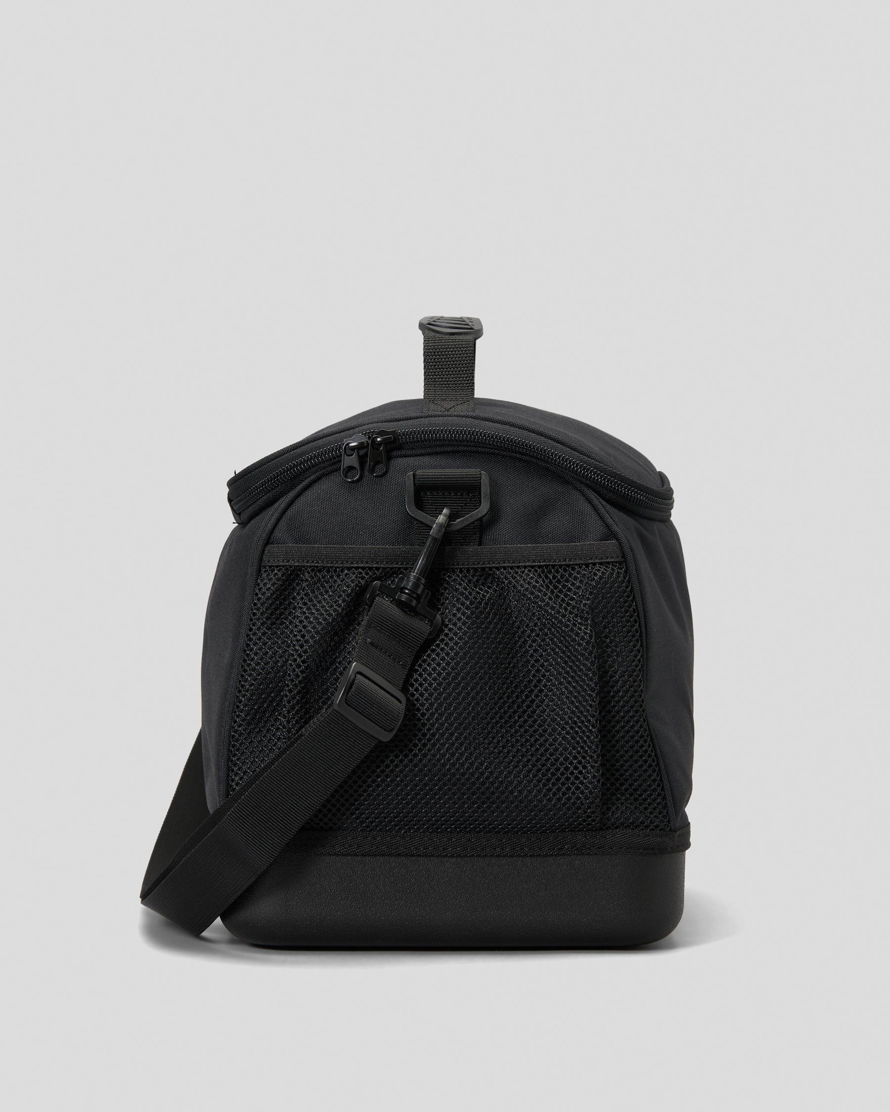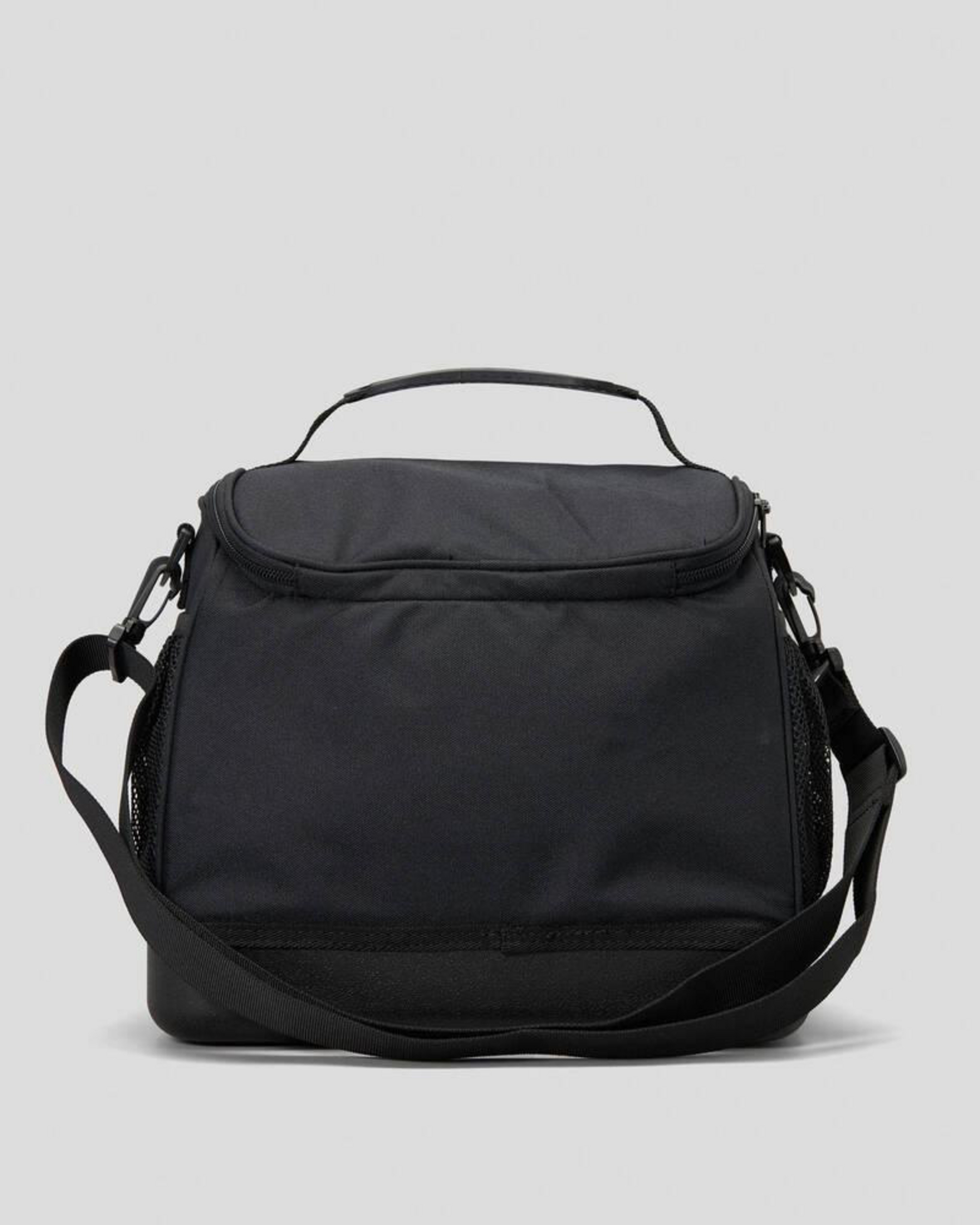 Insulated lining. Adjustable shoulder strap. Cary handle. Mesh side pockets.