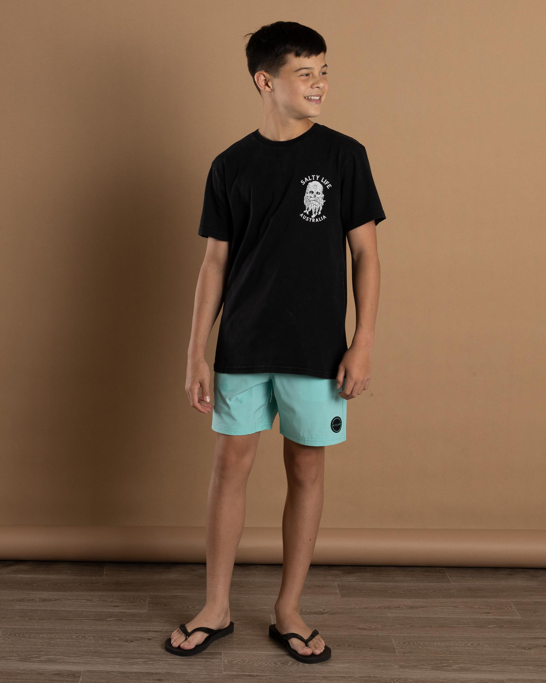 The Salty Life Boys' Hollander T-Shirt in Light Grey Acid is a cool and casual choice for any young trendsetter.