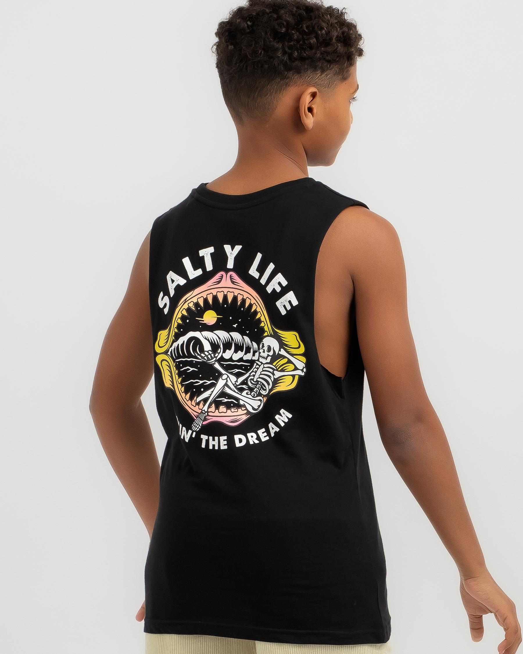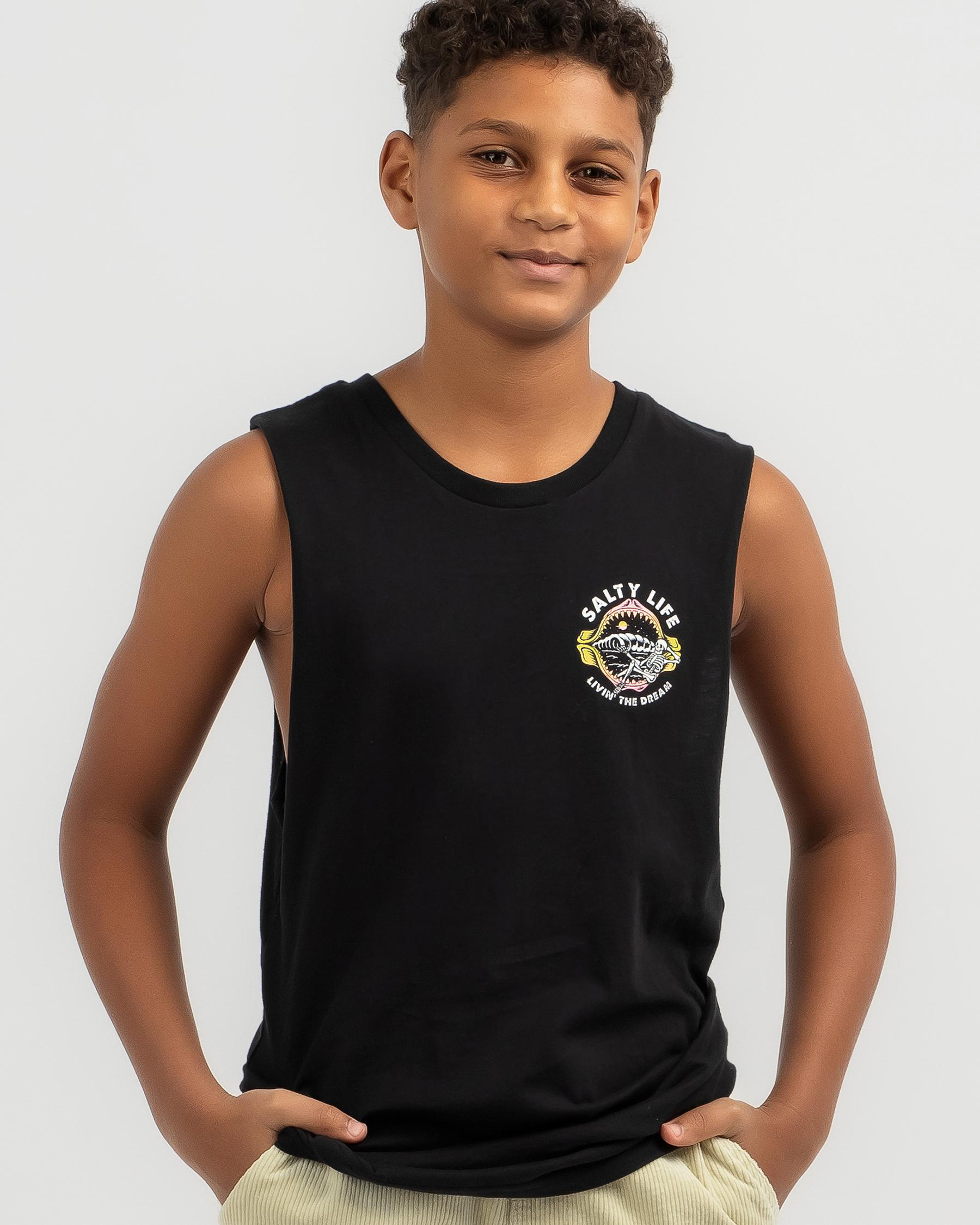 The Salty Life Boys' Secret Retreat Muscle Tank in Black is a versatile and cool addition to any wardrobe, perfect for casual and active wear.