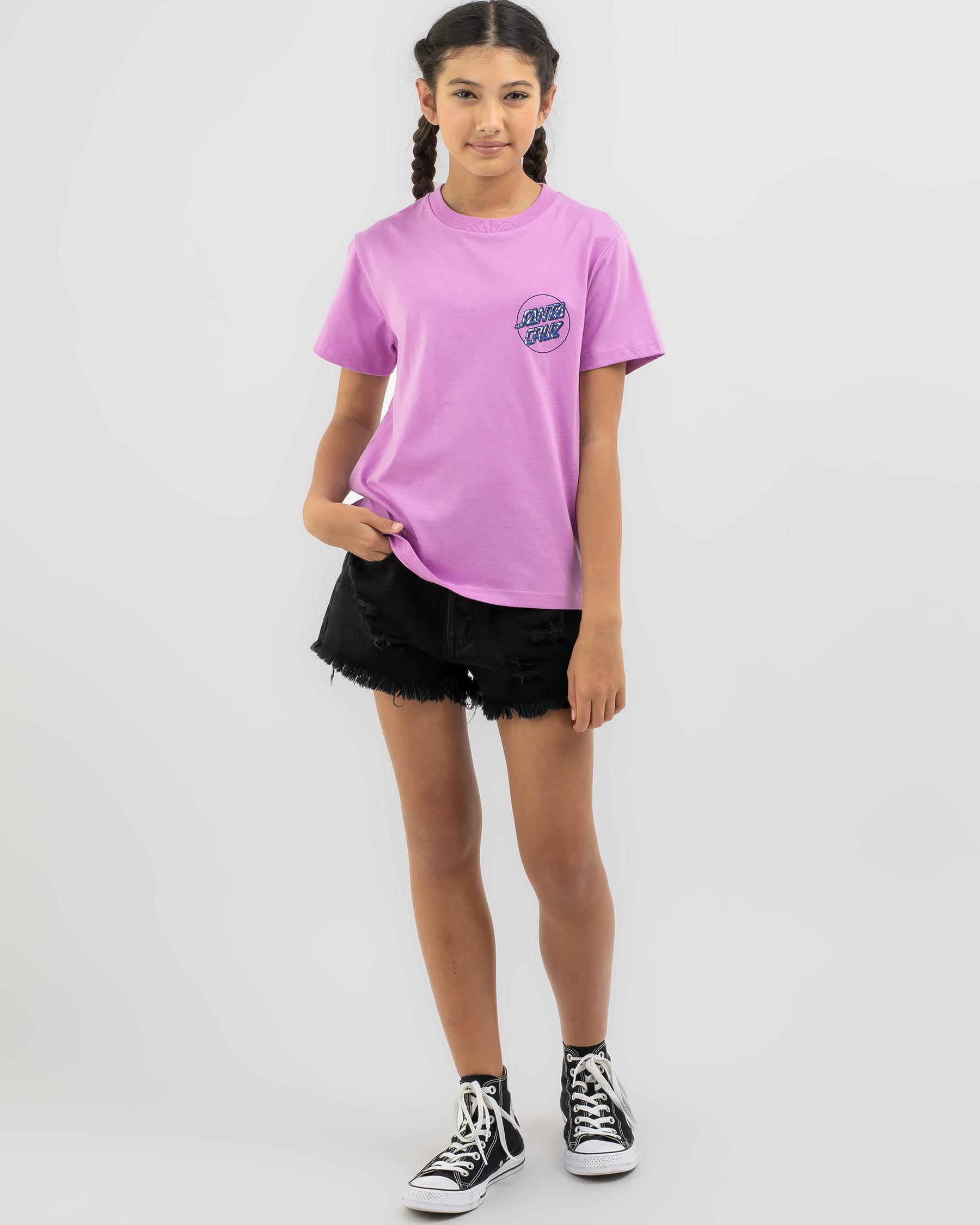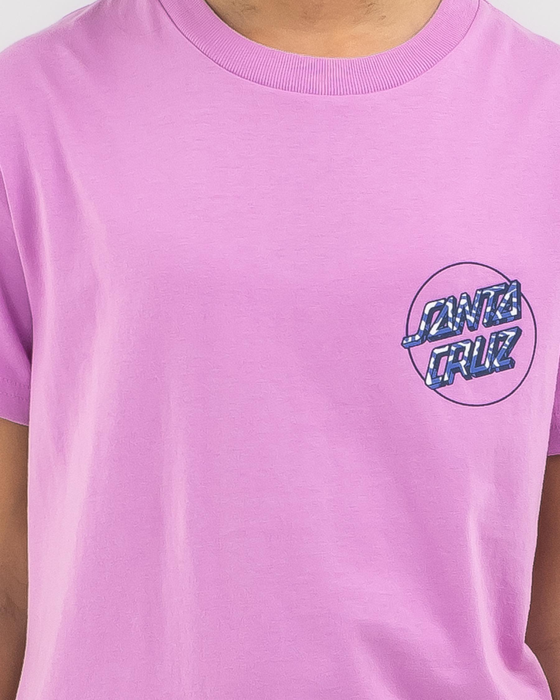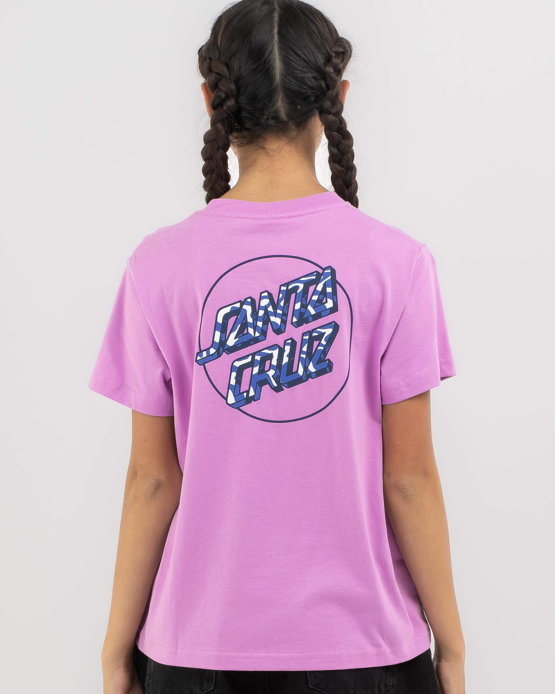 Stand out in the crowd with this pale pink Santa Cruz Girls' Zebra Marble Opus Dot T-Shirt. The unique zebra marble design adds a playful touch to any outfit.