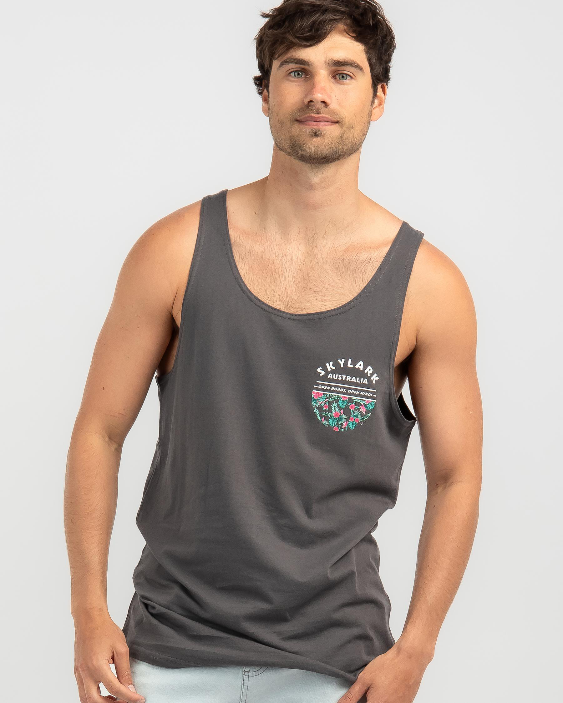 Elevate your summer style with the Skylark Hibiscus Singlet in Charcoal. Stay cool and comfortable in this versatile and trendy top.