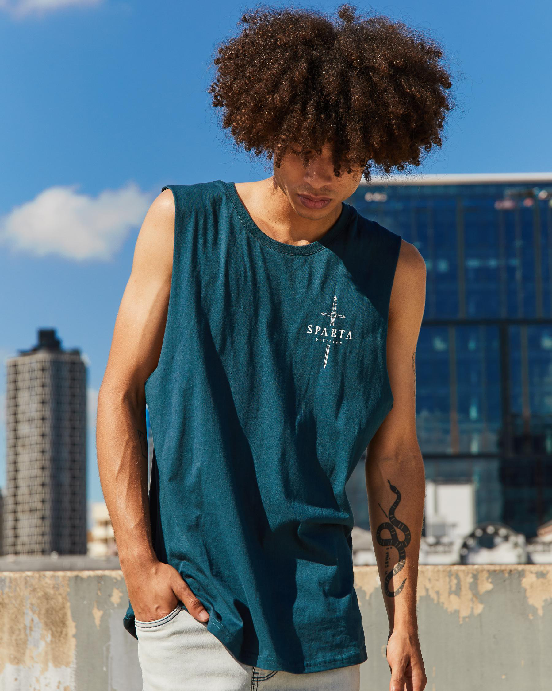 The Sparta Sheath Muscle Tank in Teal is a stylish and versatile addition to your wardrobe, perfect for effortless casual looks.