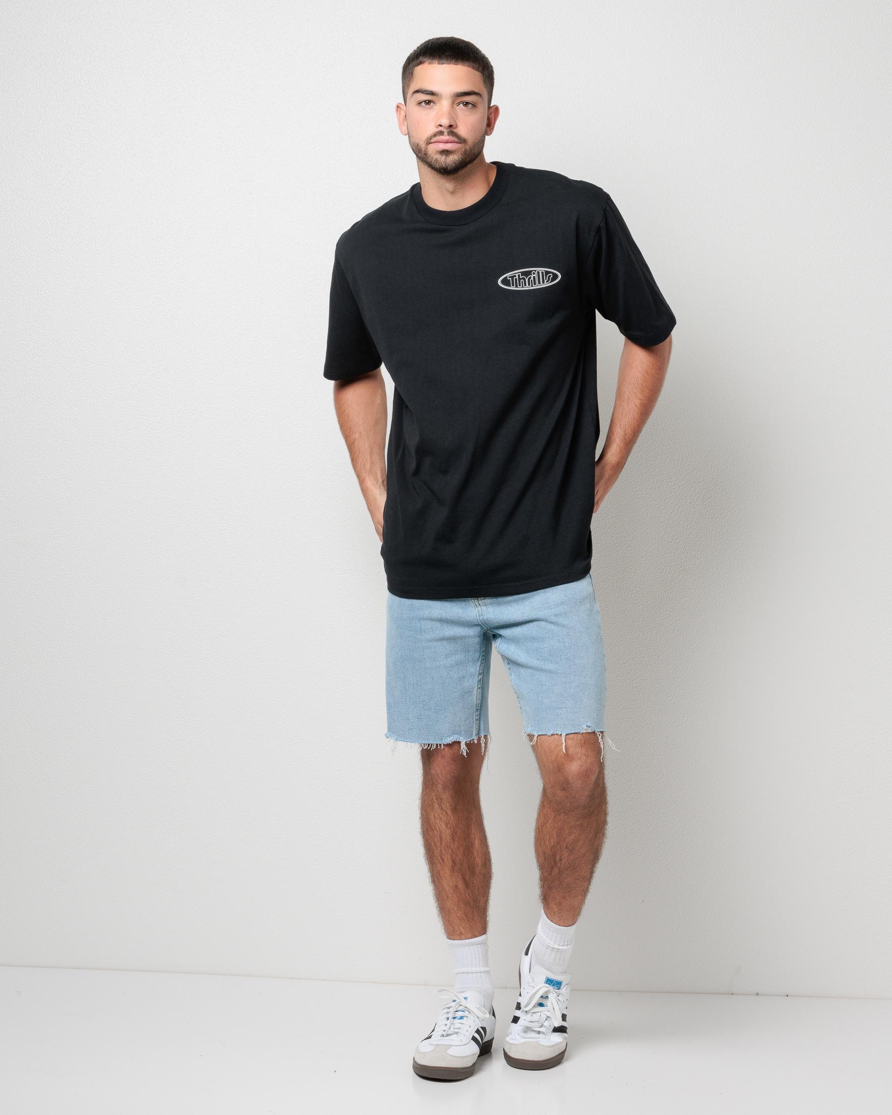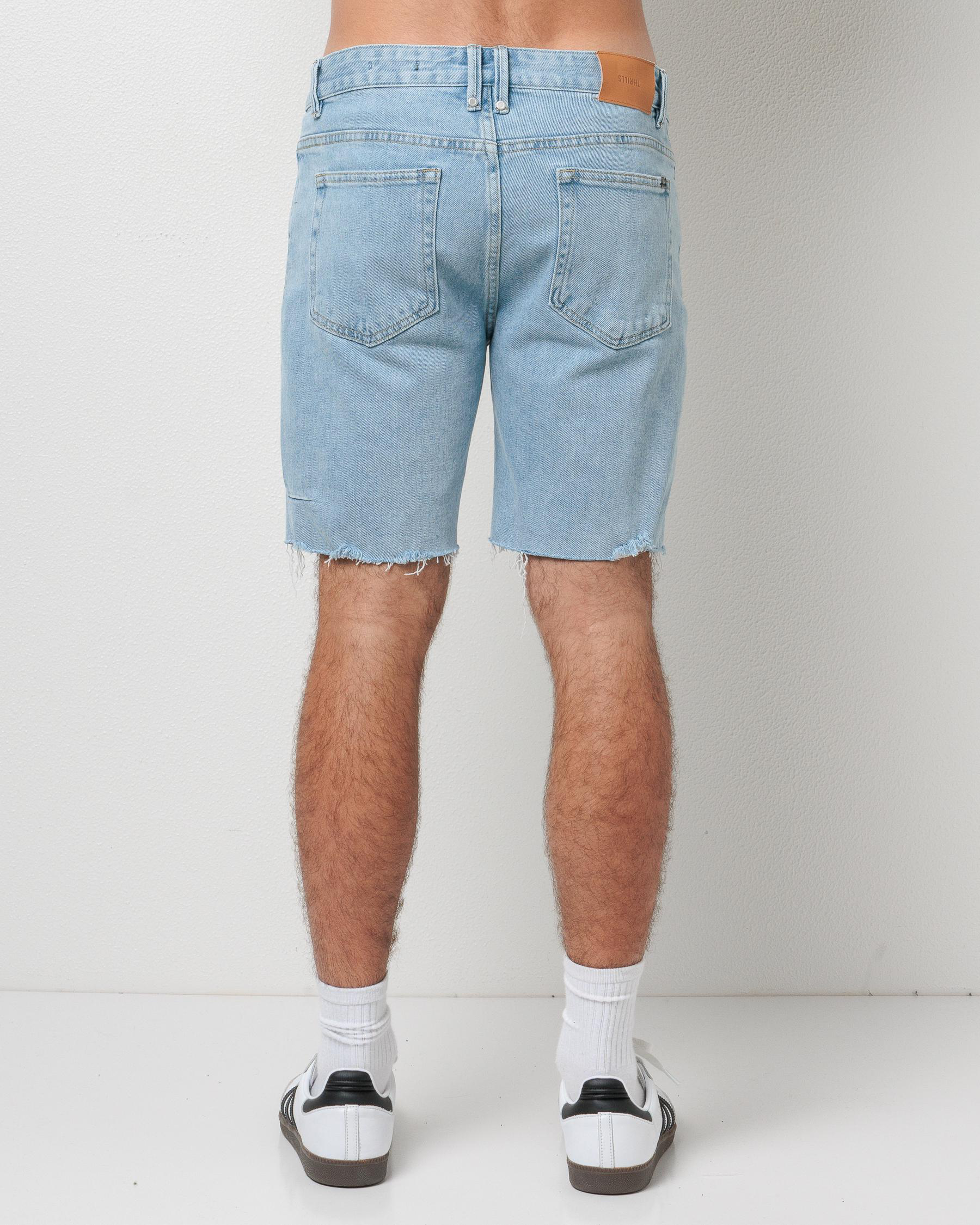 The Thrills Bones Denim Shorts in a light ash blue hue exude laid-back vibes and are perfect for everyday wear.