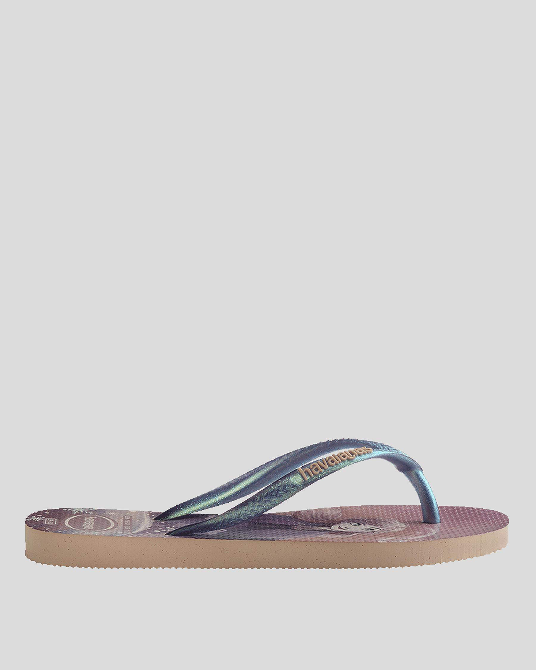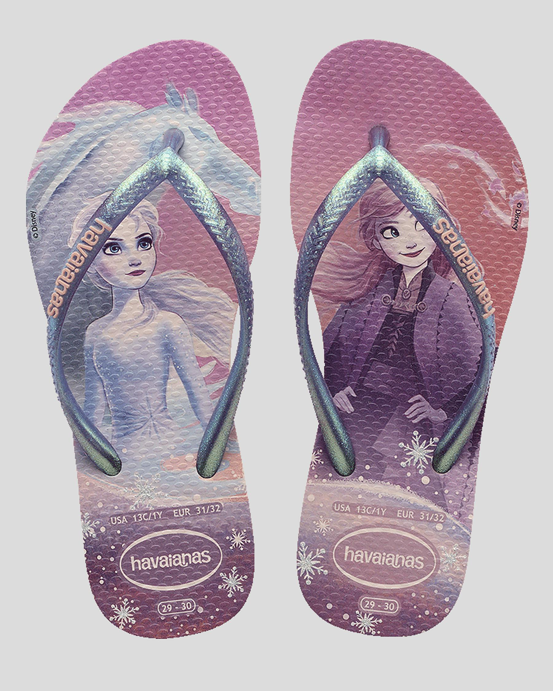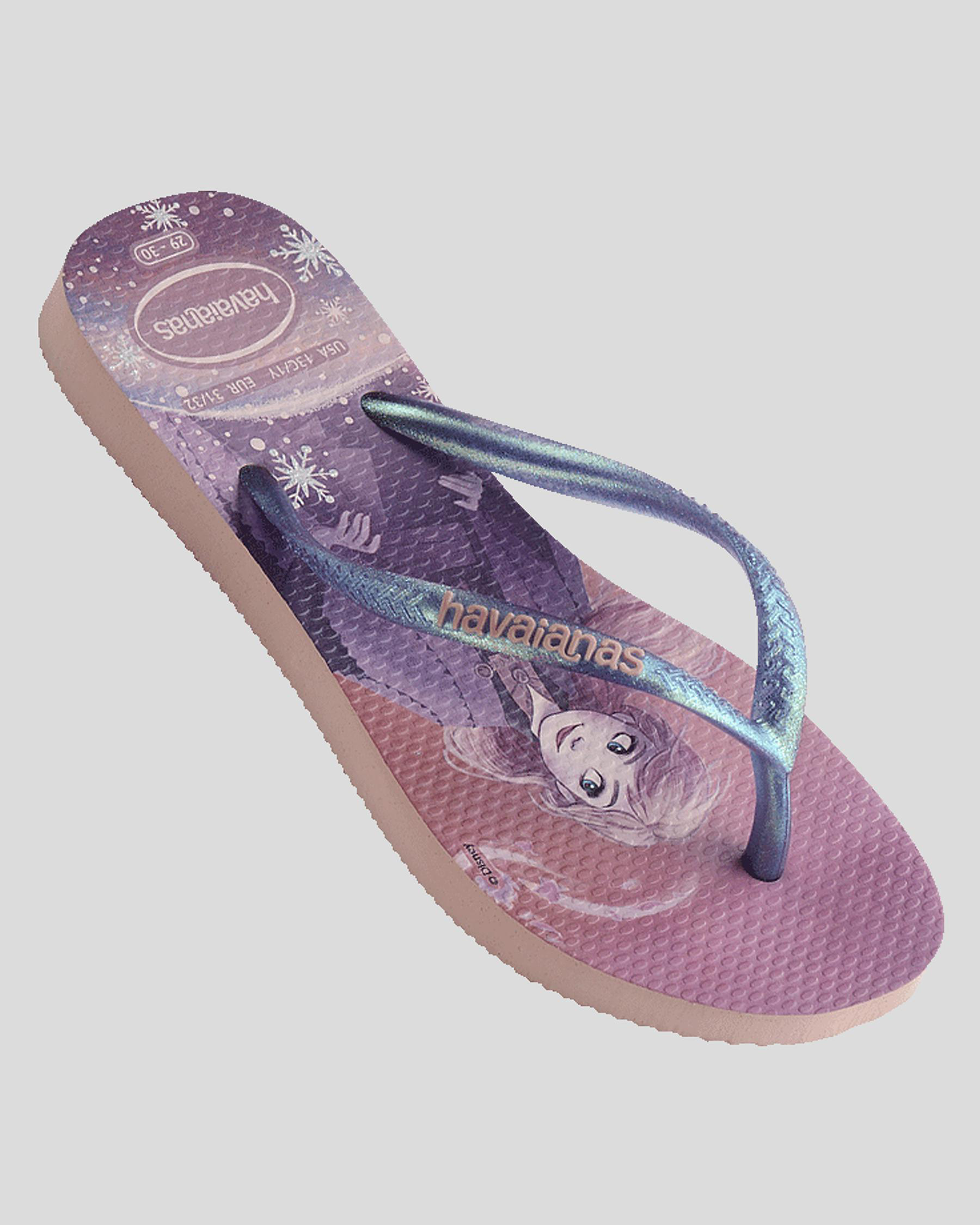 Slim straps, Textured footbed, Printed footbed, Rubber logo