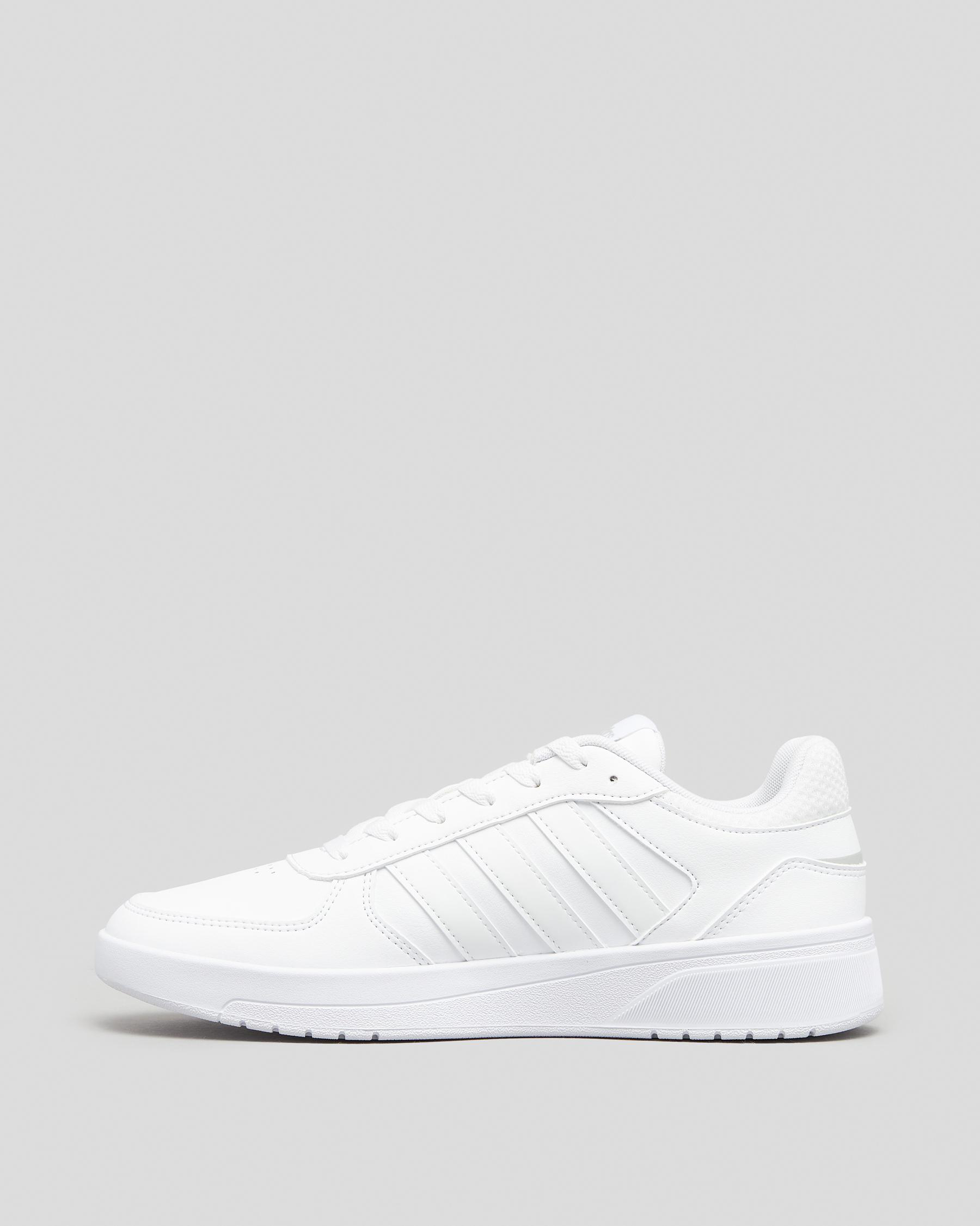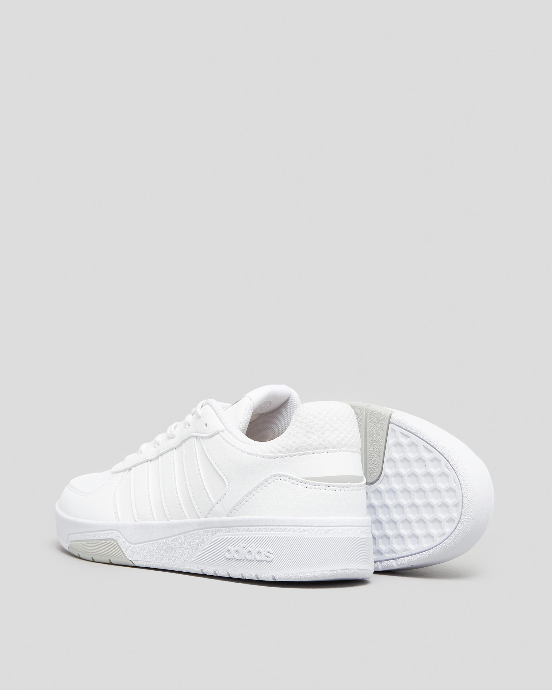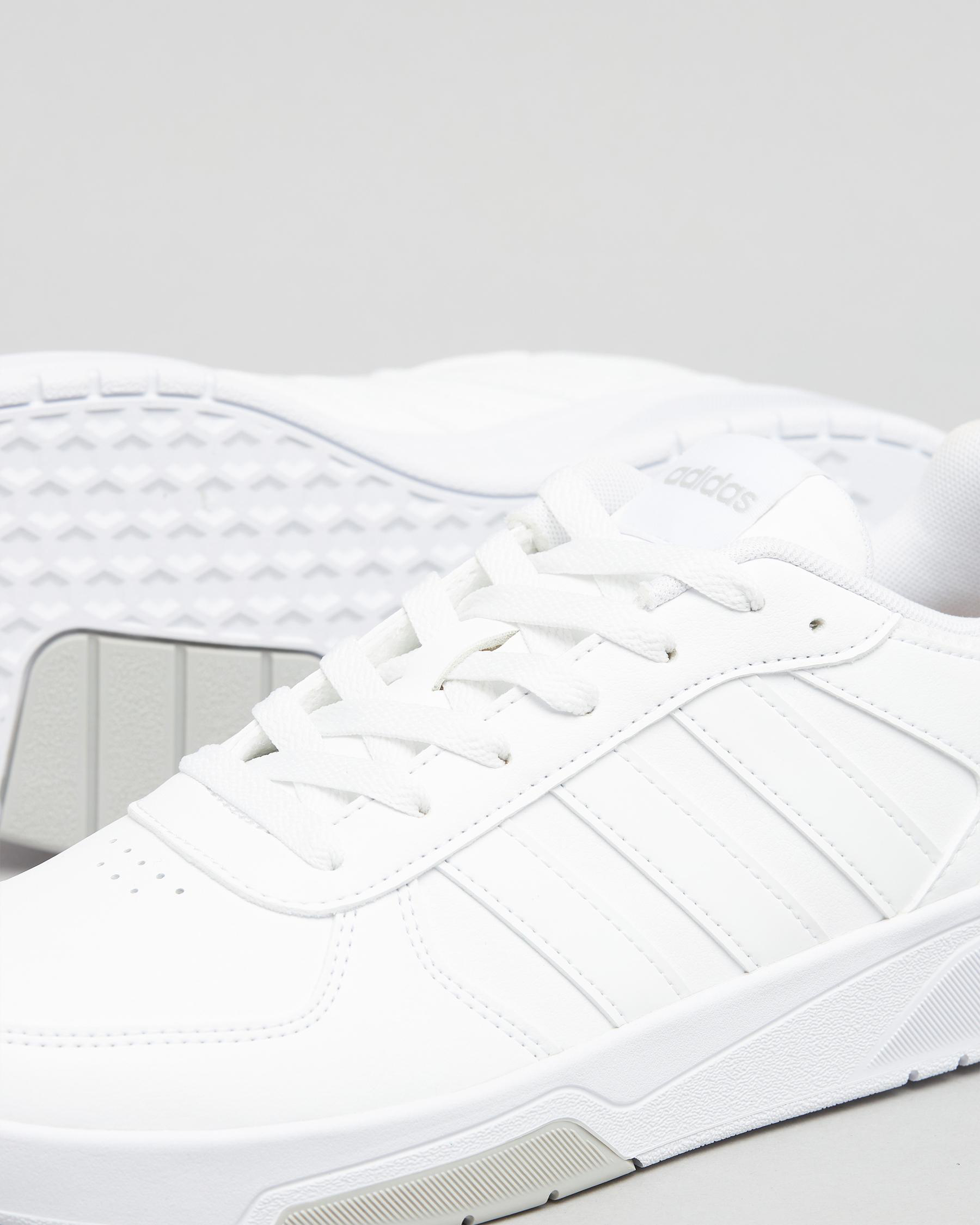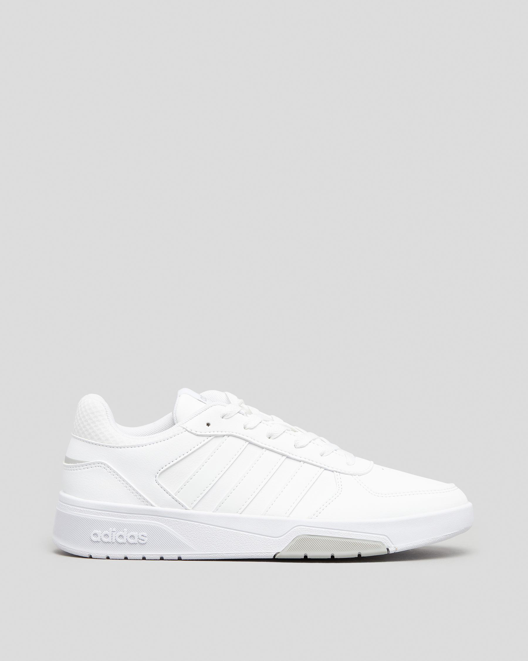 Elevate your style with the adidas Women's Courtbeat Shoes in sleek white. These shoes feature a classic black stripe for a timeless look.
