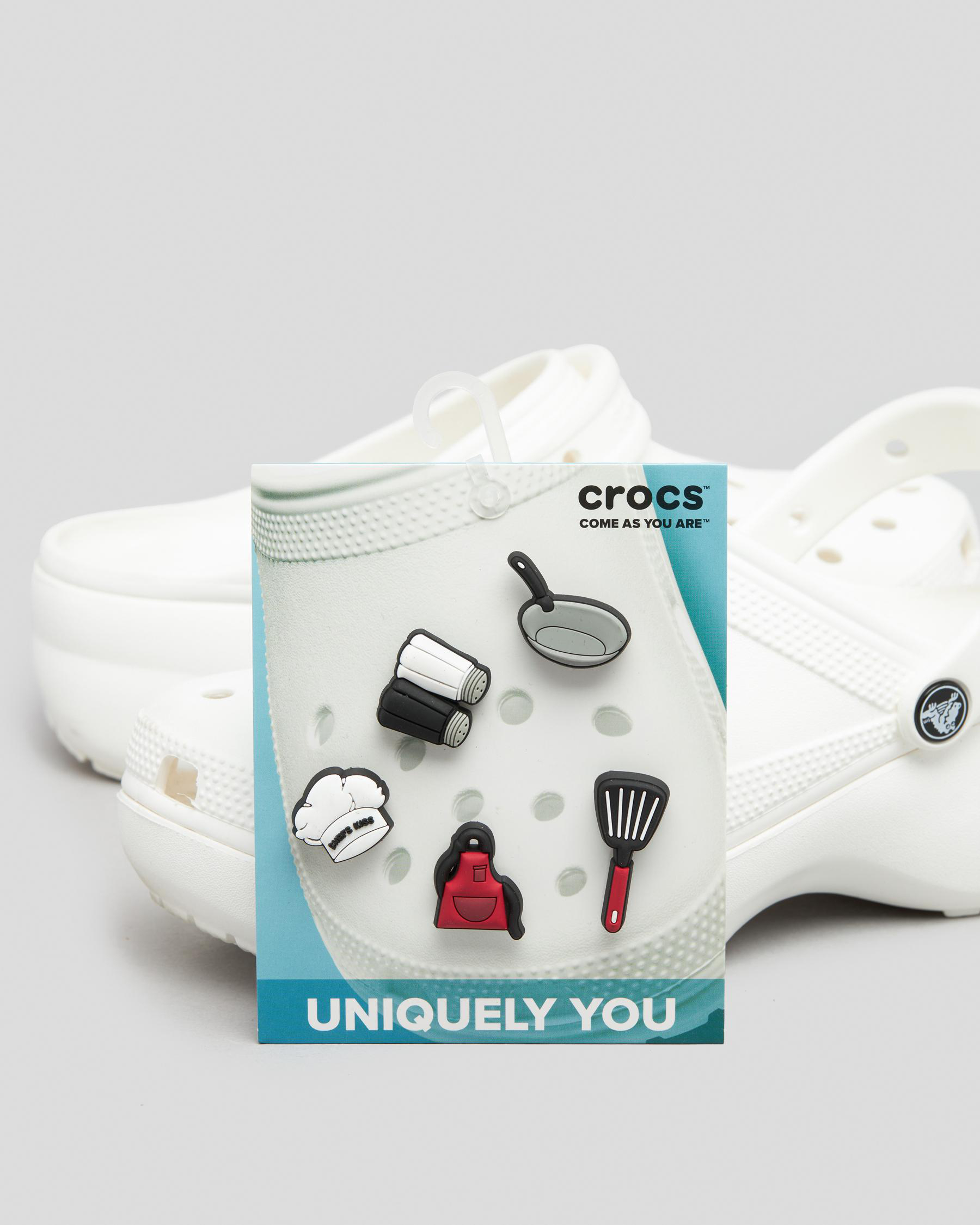 Pop some personality into your shoes with these Chef 5 Pack Jibbitz™ charms. They’re the perfect addition to your favorite pairs of clogs, slides, and more.