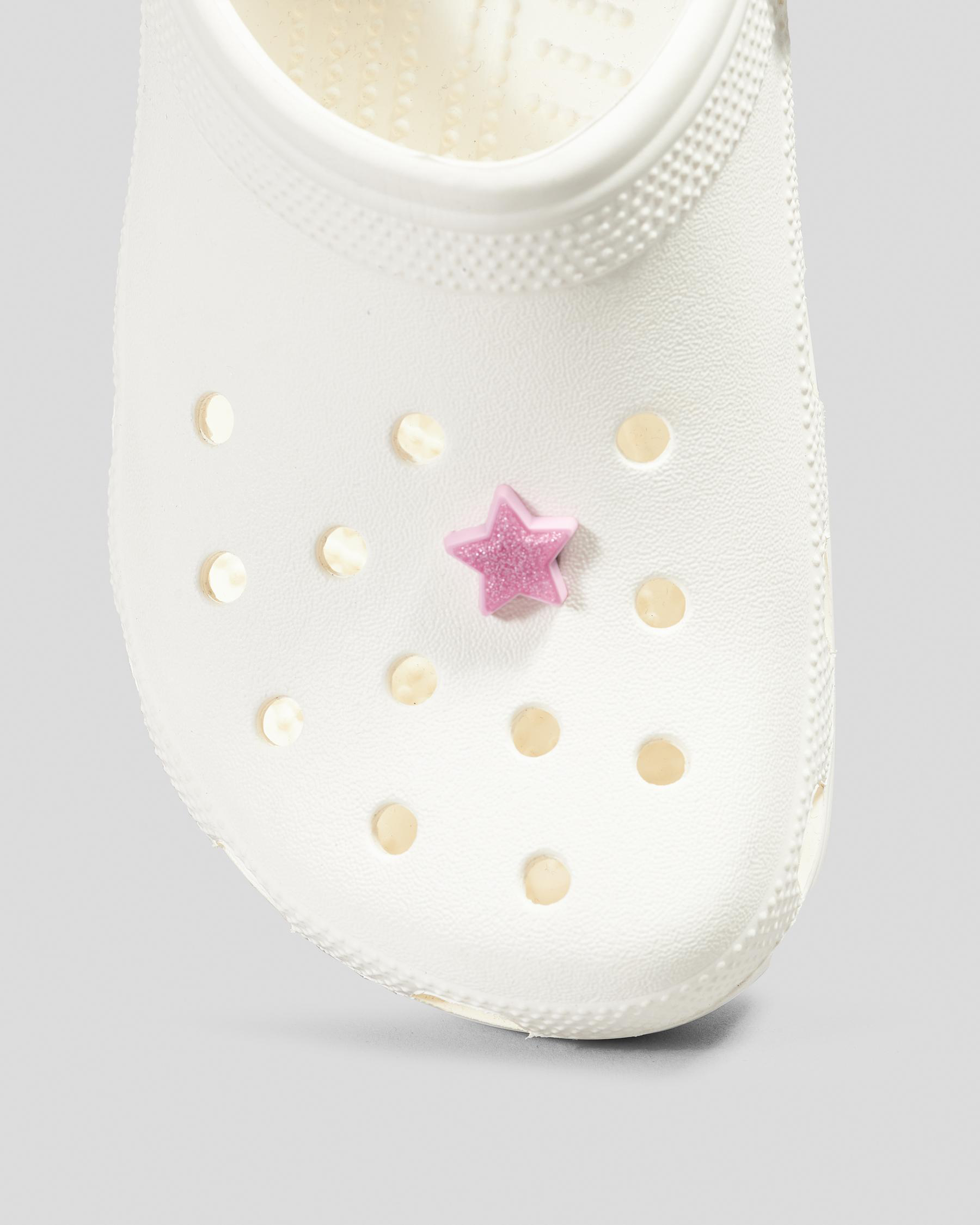 Add a touch of sparkle to your Crocs with the Crocs Tiny Glitter Star Jibbitz. Perfect for those who love to personalize their footwear, this charming accessory features a dazzling glitter star design that effortlessly elevates your style. Crafted to fit securely into the holes of your Crocs, it offers a fun and easy way to express your individuality. Whether you're heading to the beach, running errands, or simply lounging at home, this Jibbitz adds a playful flair to any casual outfit. Made with durable materials, it ensures long-lasting wear, making it a great addition to your collection. Ideal for both kids and adults, the Crocs Tiny Glitter Star Jibbitz is a must-have for anyone looking to add a bit of shine to their everyday look. Tran