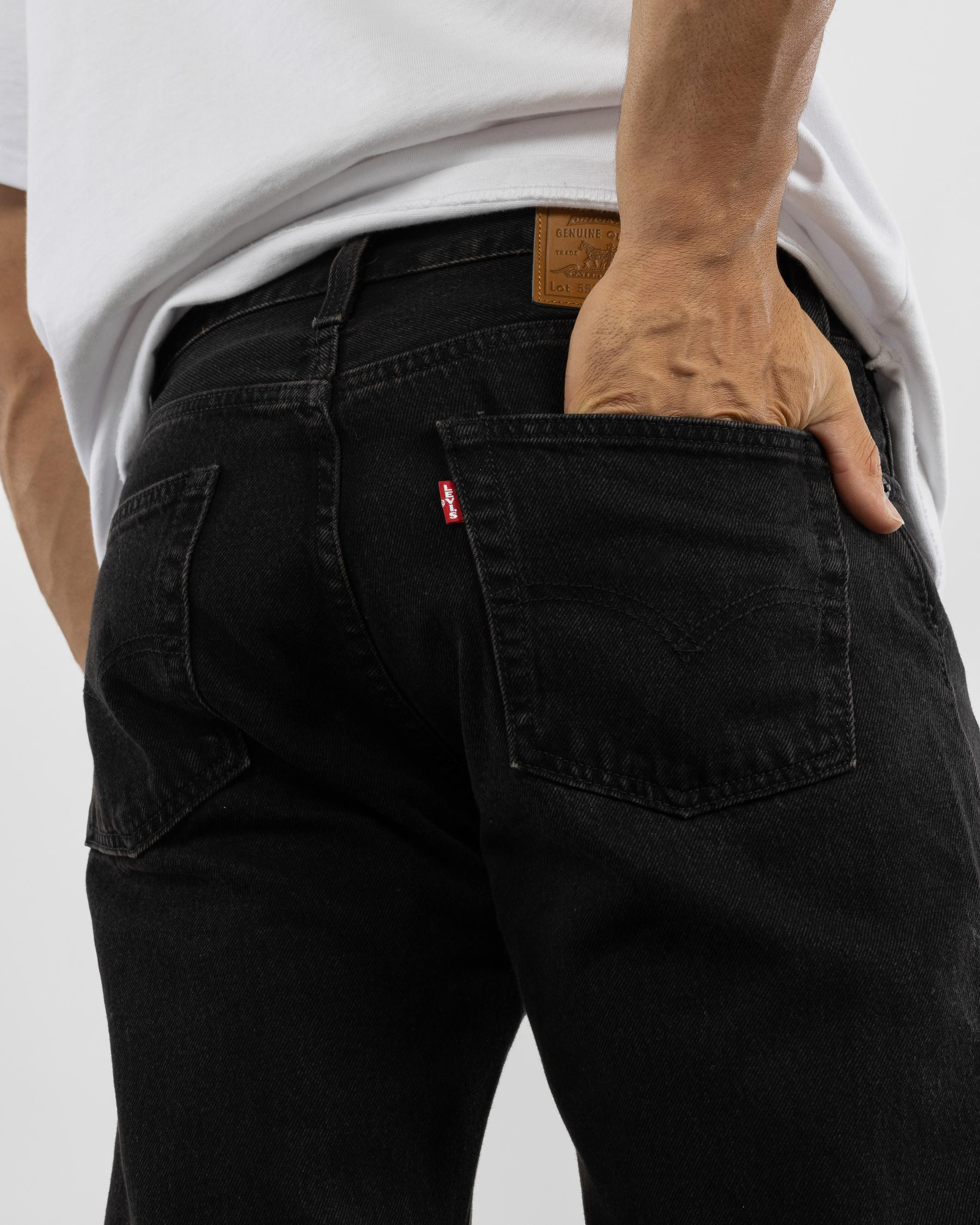 Single patch pocket, Back pockets, Front hand pockets, Belt loops