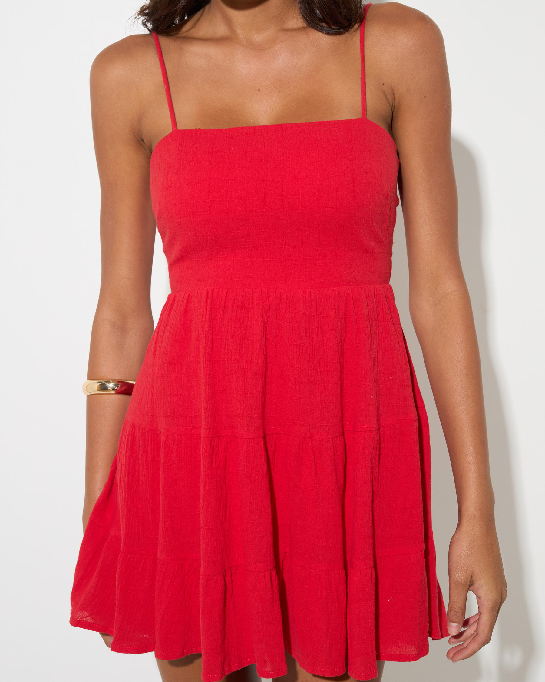 The Mooloola Tabetha Dress in Red is a vibrant and stylish addition to your wardrobe, perfect for making a statement at any event.