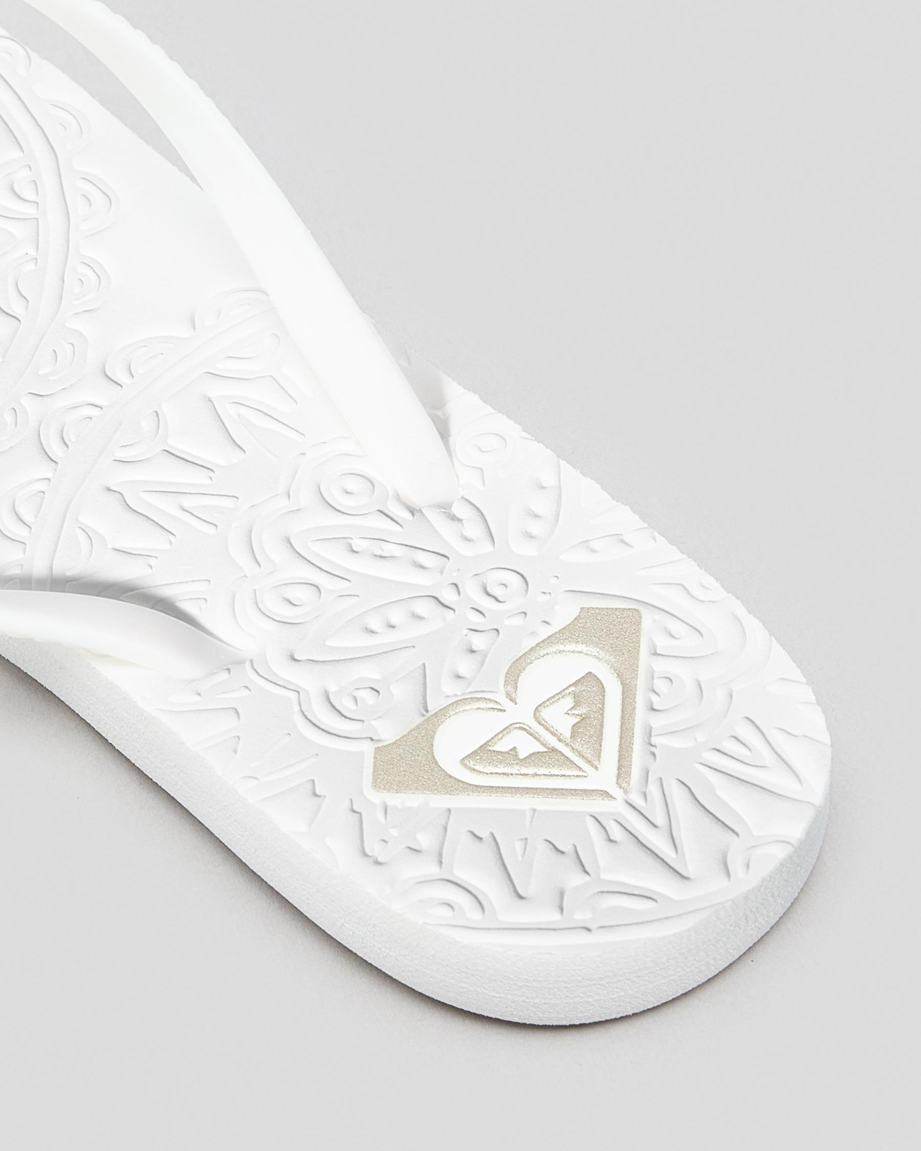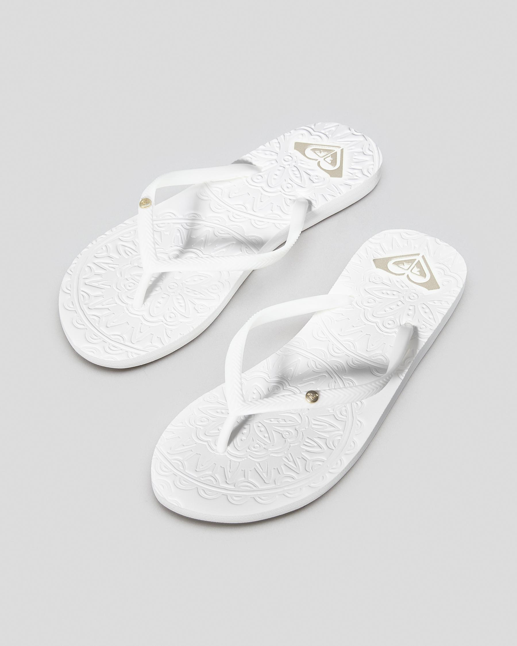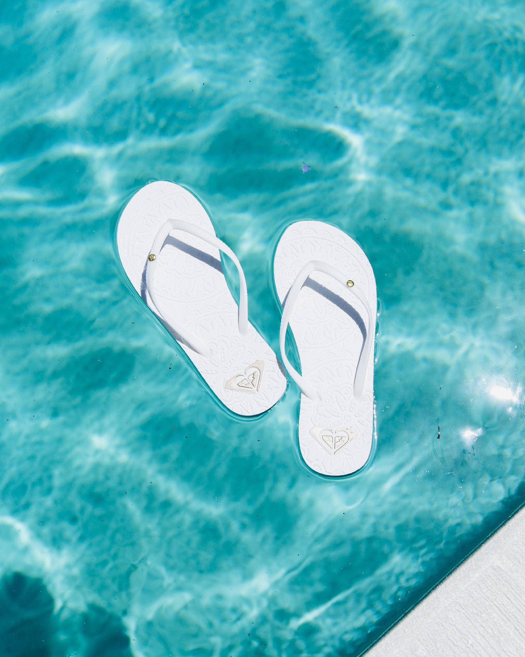 Slim straps, Textured footbed, Metal logo, Printed footbed